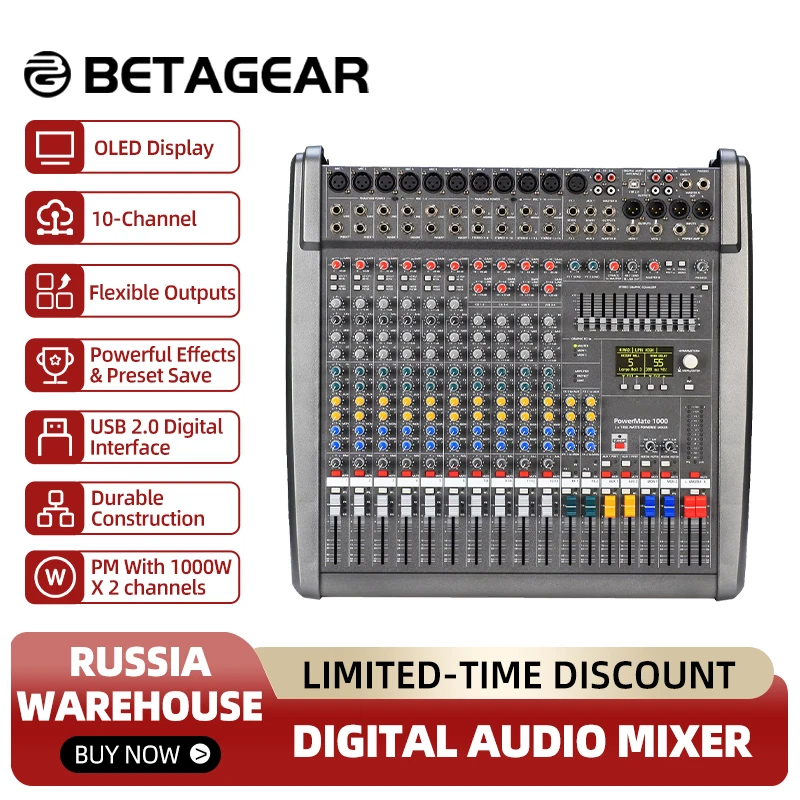 Betagear Power Mixer Audio Powermate PM1000-3 1000W Mixing Consola Digital Powered Mixing Desk appar...