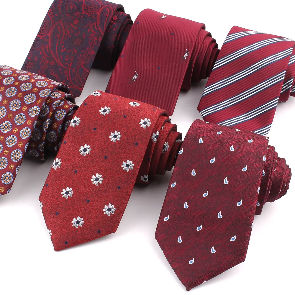 Cravatta da sposa alla moda da uomo Casual Wine Red serie 7cm in po...