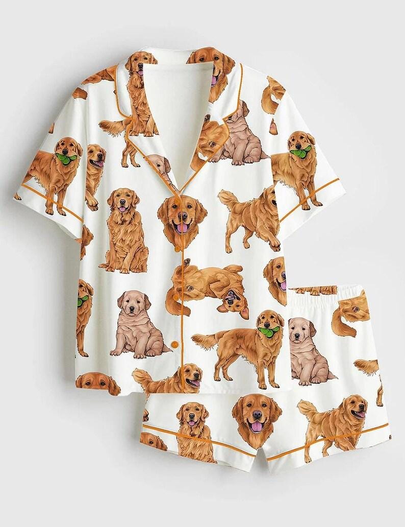 Pigiama Golden Retriever, pigiama a maniche corte con stampa di can...