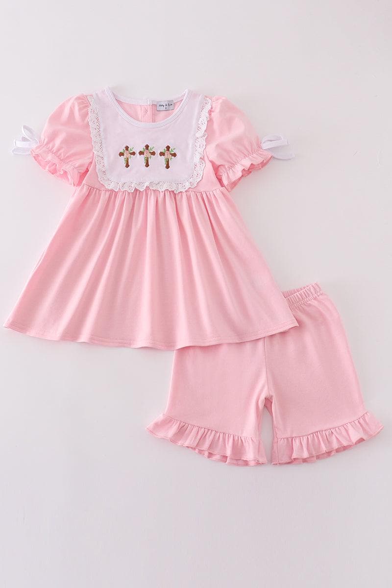 Abby & Evie Girl's Boutique Rosa Pasqua Croce Pizzo Bambina Ric...