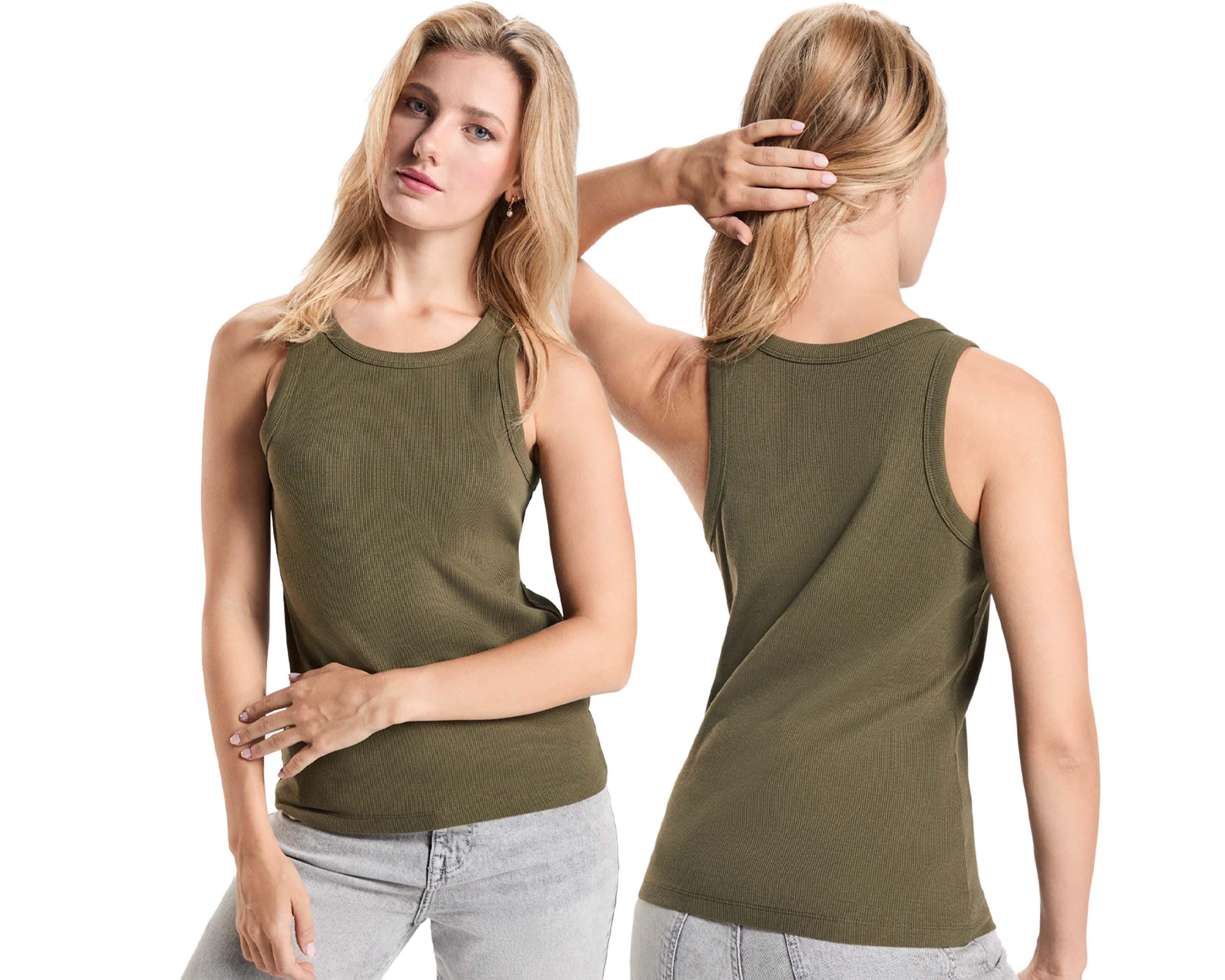 Canotta a coste da donna - Top senza maniche in cotone elasticizzat...