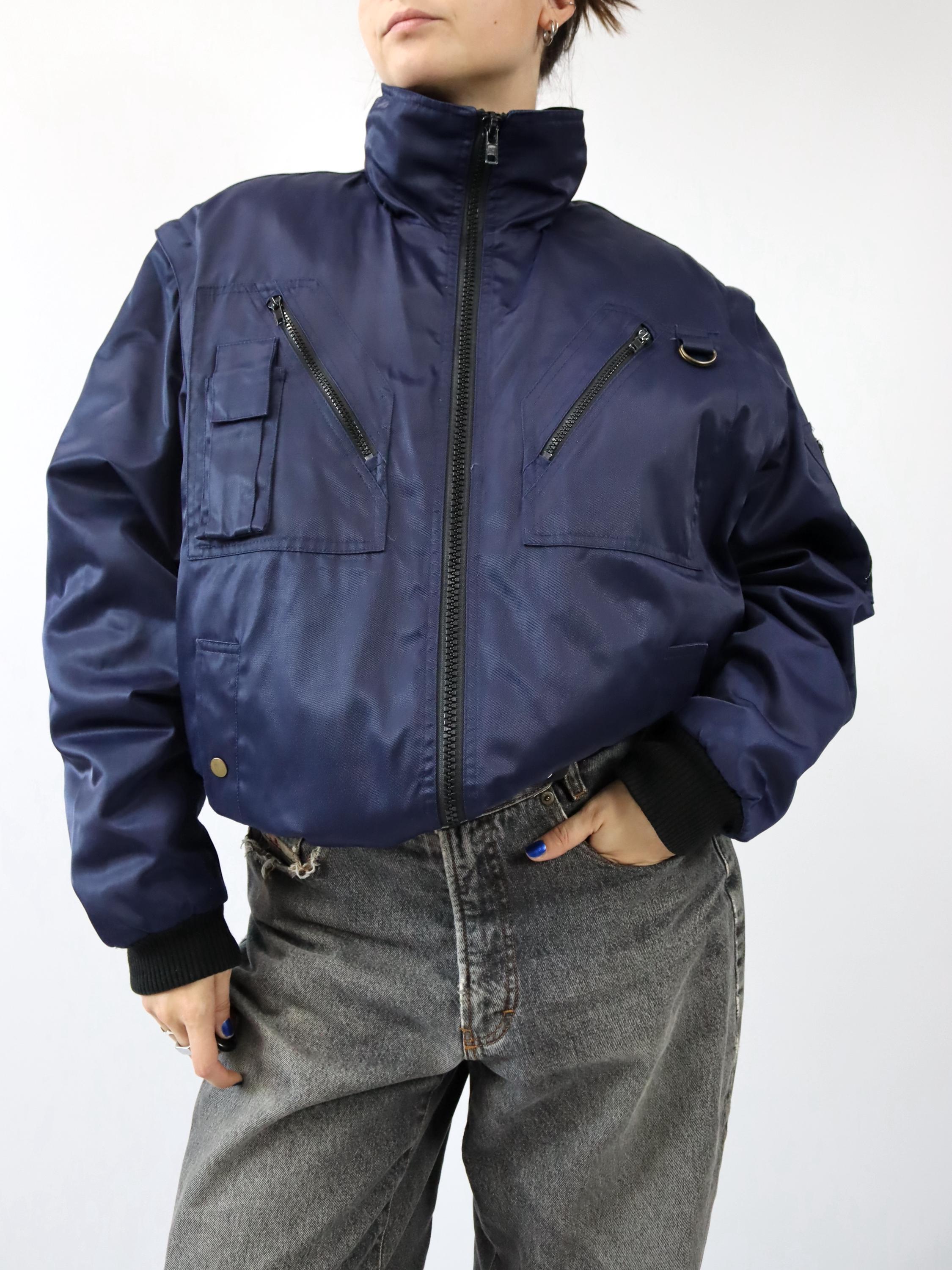 Giacca da lavoro 2 in 1 vintage anni '80/'90, giacca invernale, gilet foderato, bomber blu scuro, ta...