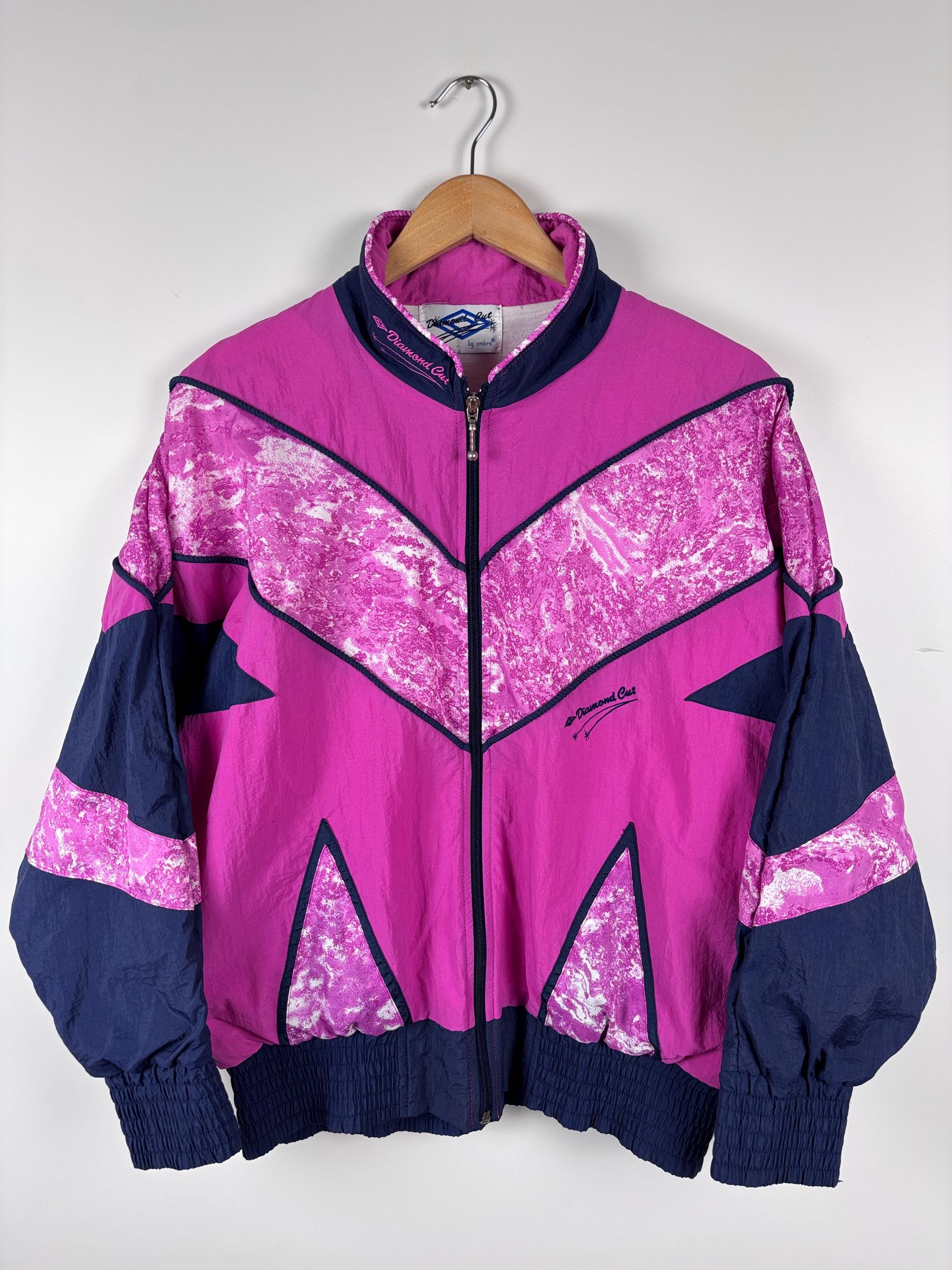 Giacca sportiva vintage anni '90 Diamond Cut di Umbro, rosa e blu, da donna, taglia 12 Condizione: B...