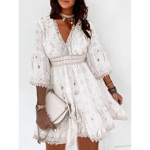 Per donna Mini Abito Abito Bianco Abito in Pizzo Abito da Sposa in ...
