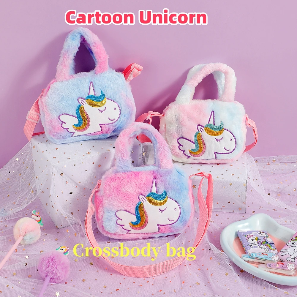 Borsa a tracolla in peluche con unicorno per bambini dei cartoni animati Borsa a tracolla carina per...