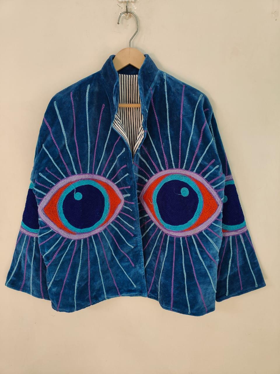 Handcrafted Velvet Suzani Eye Jacket - Vintage-Style Embroidered Bo...