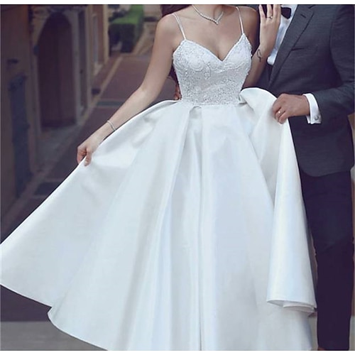Abiti da Sposa Boho Vestito Ball Gown V Collo Spaghetti Straps Lung...