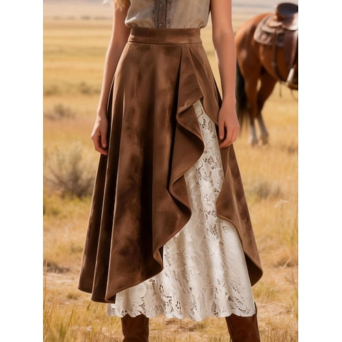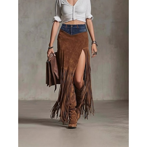 Per donna Gonna in finta pelle scamosciata Bohemien Vintage Maxi Mi...