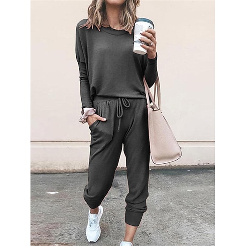 pigiama da donna pigiama top e pantaloni set colore puro moda casua...