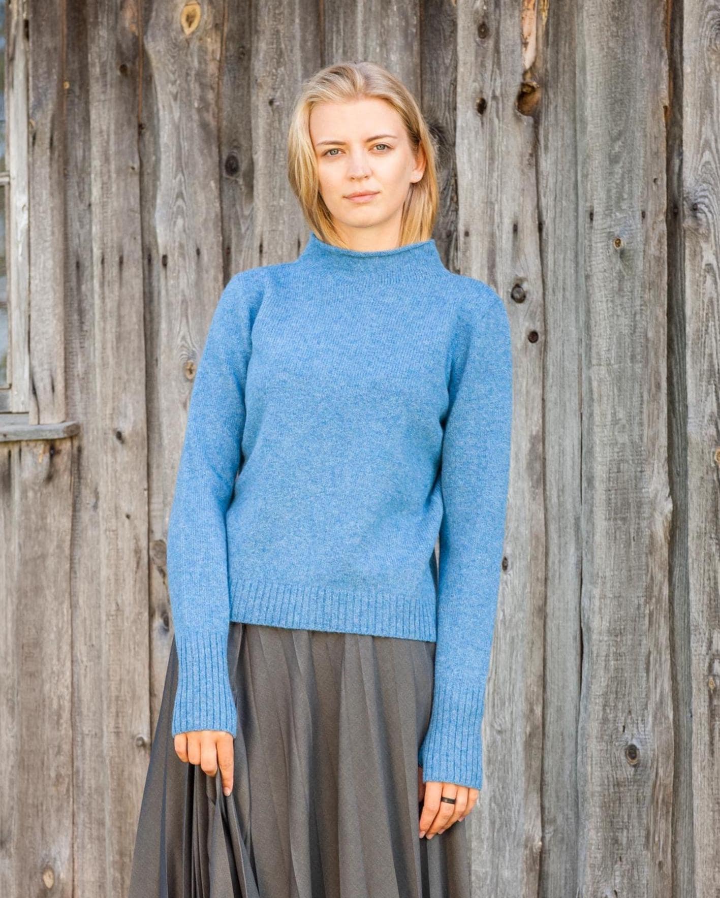 Maglione 100% lana da donna, pullover in lana con collo alto e fori...