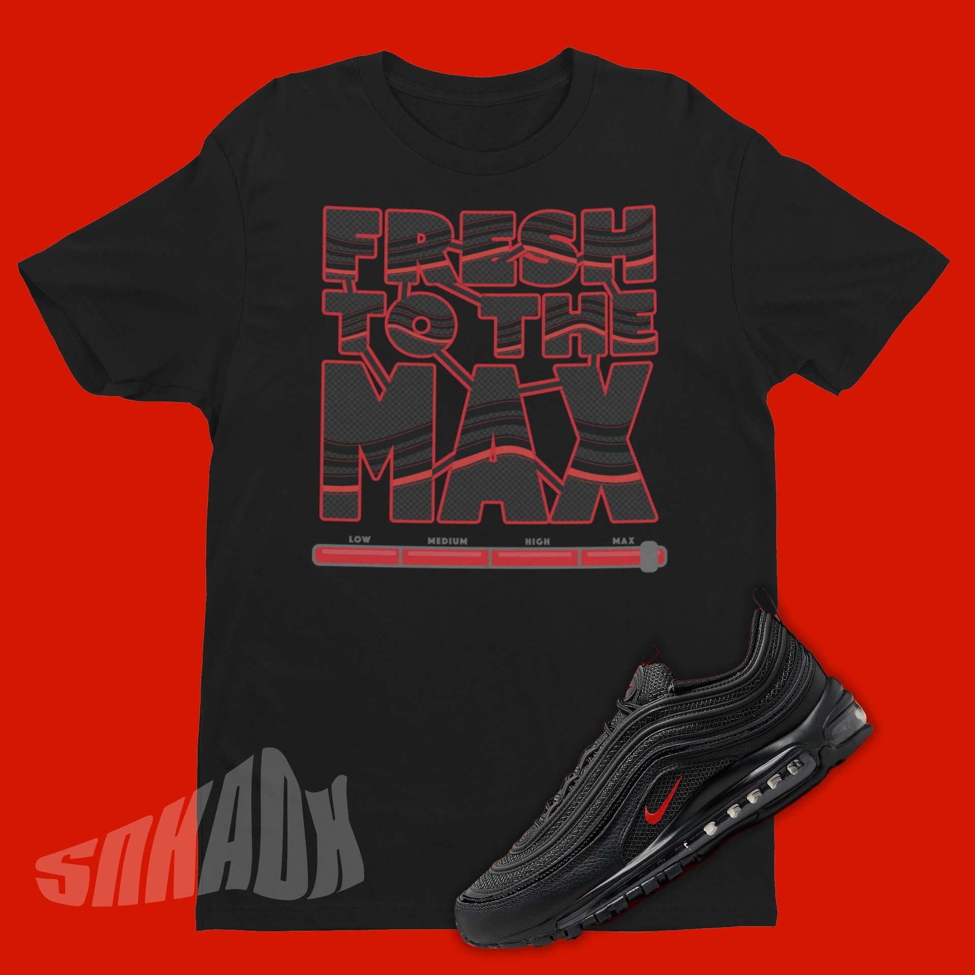 Nome del prodotto: Fresh To The Max Unisex Shirt to Match Nike Air Max 97 Bred. Progettato per abbin...