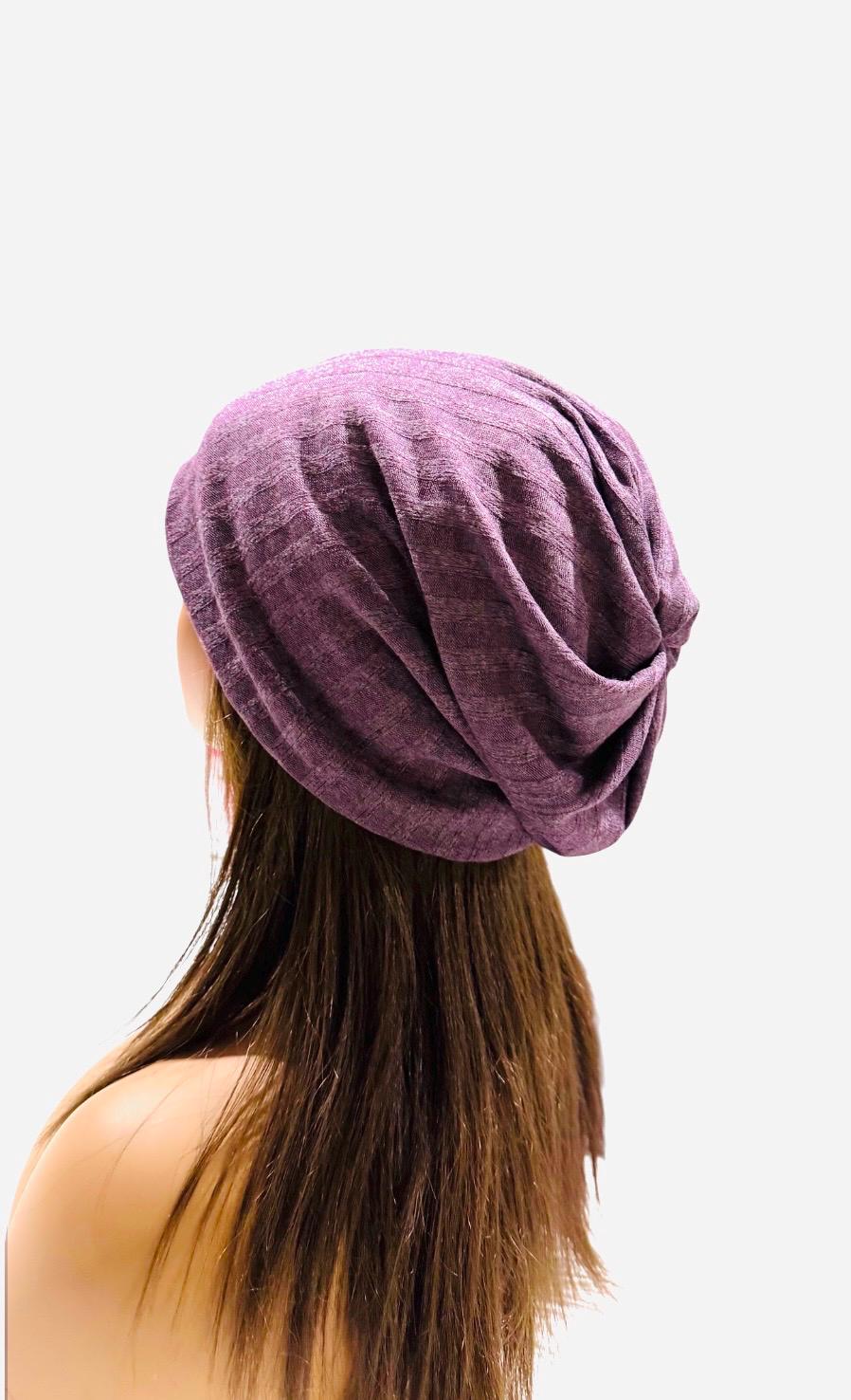 Berretto invernale da donna in maglia viola con motivo a berretto, berretto chemioterapico. Progetta...