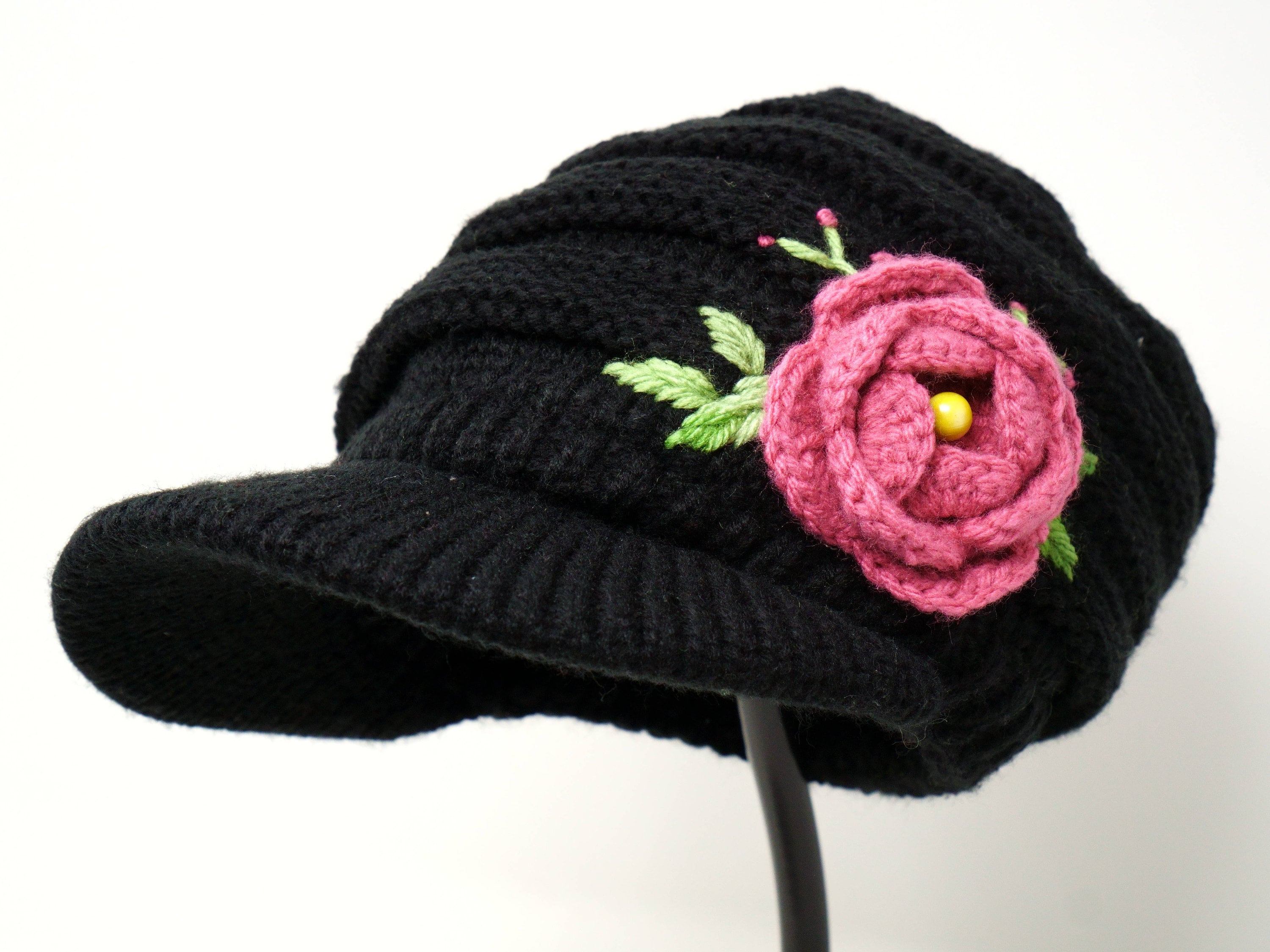 Maglia da donna Berretto Visiera Berretto Mano Uncinetto Grande Ros...