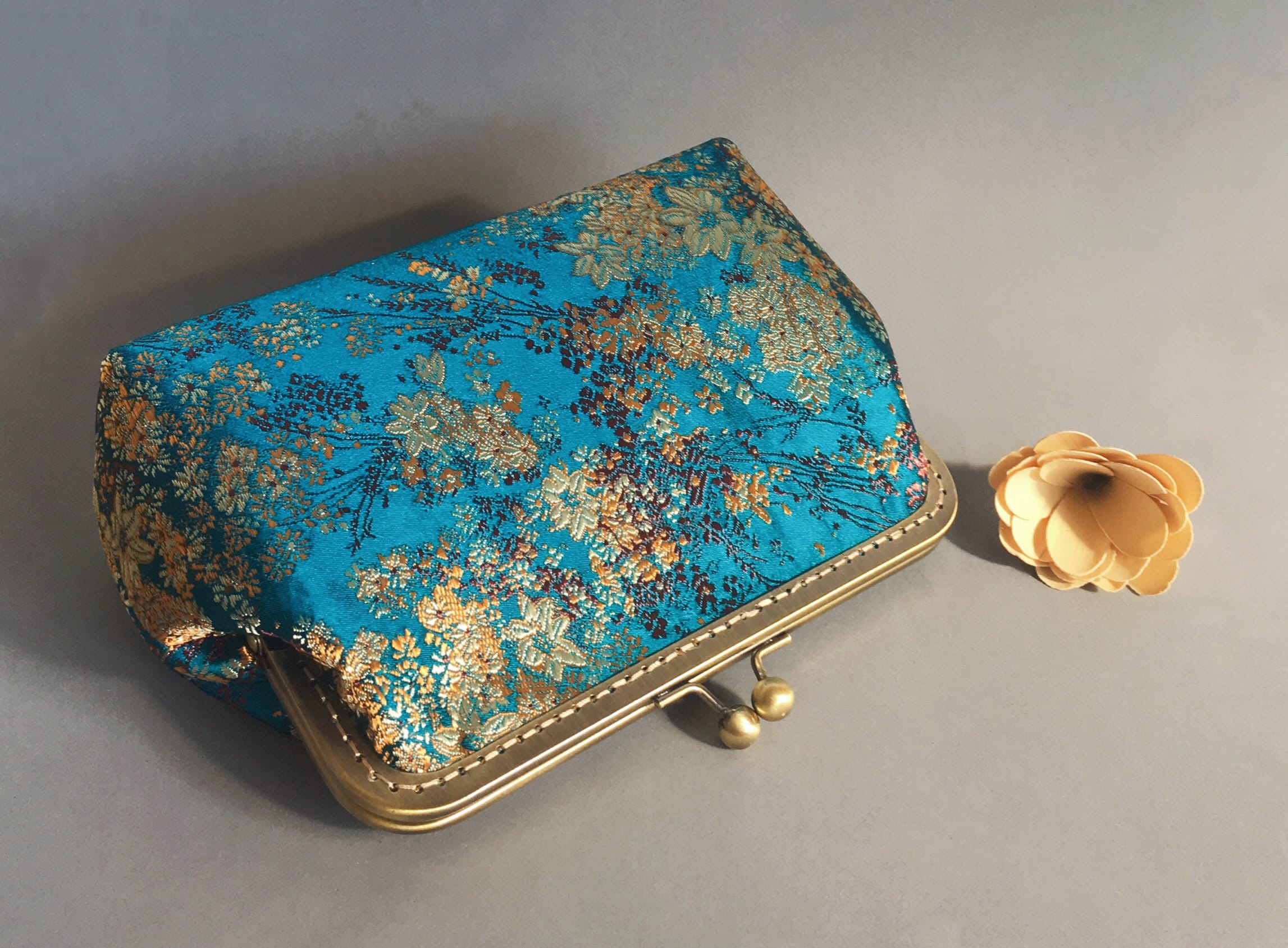 Clutch blue clutch handbag handmade shoulder bag with Chinese embro...