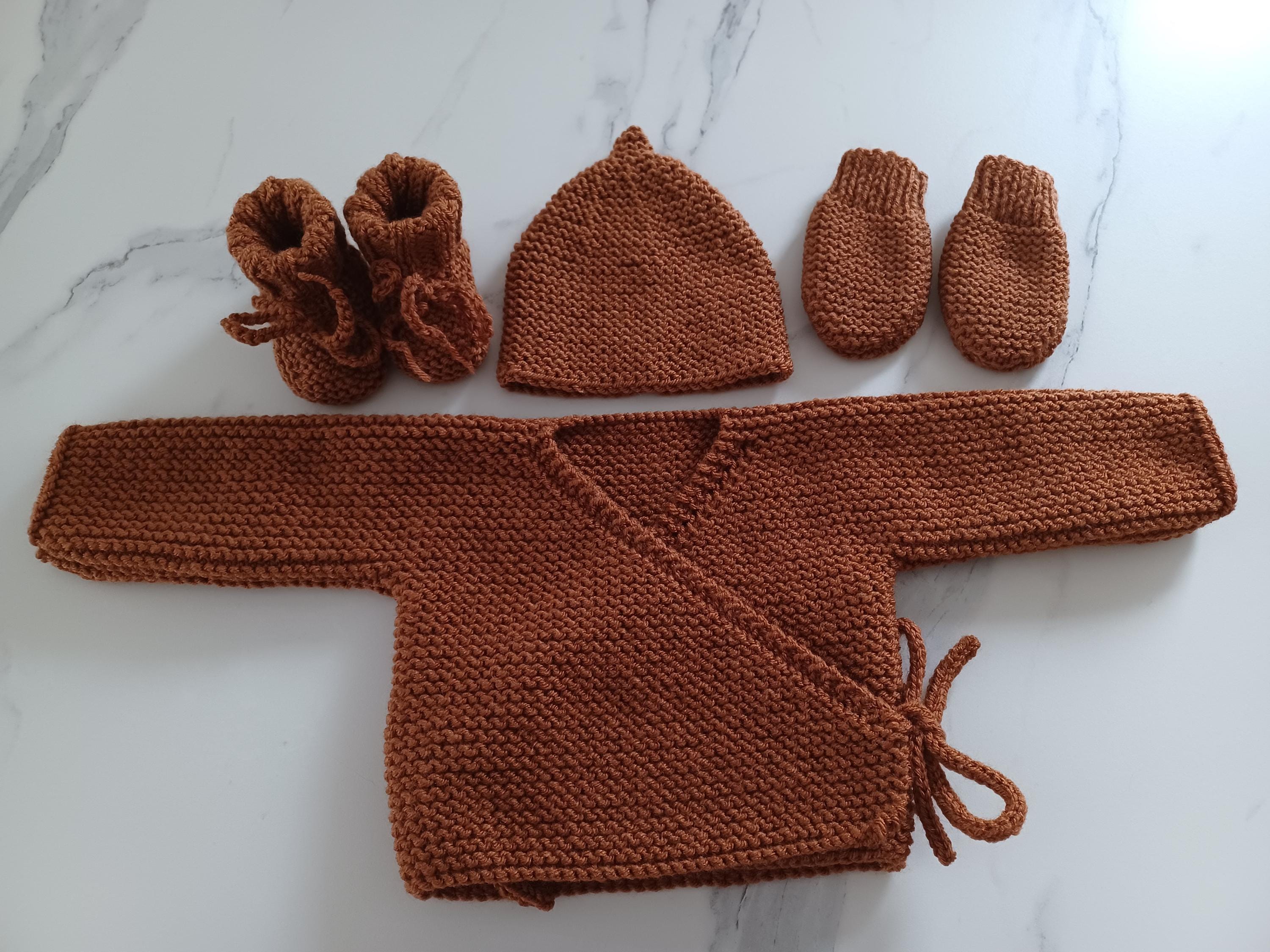 Un set per neonati da 3 o 4 pezzi, composto da una canottiera, un paio di scarpine, un cappellino e ...