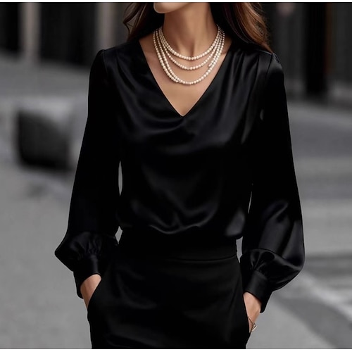 Per donna Camicia in raso Camicia elegante Blusa Elegante Moda Lavo...