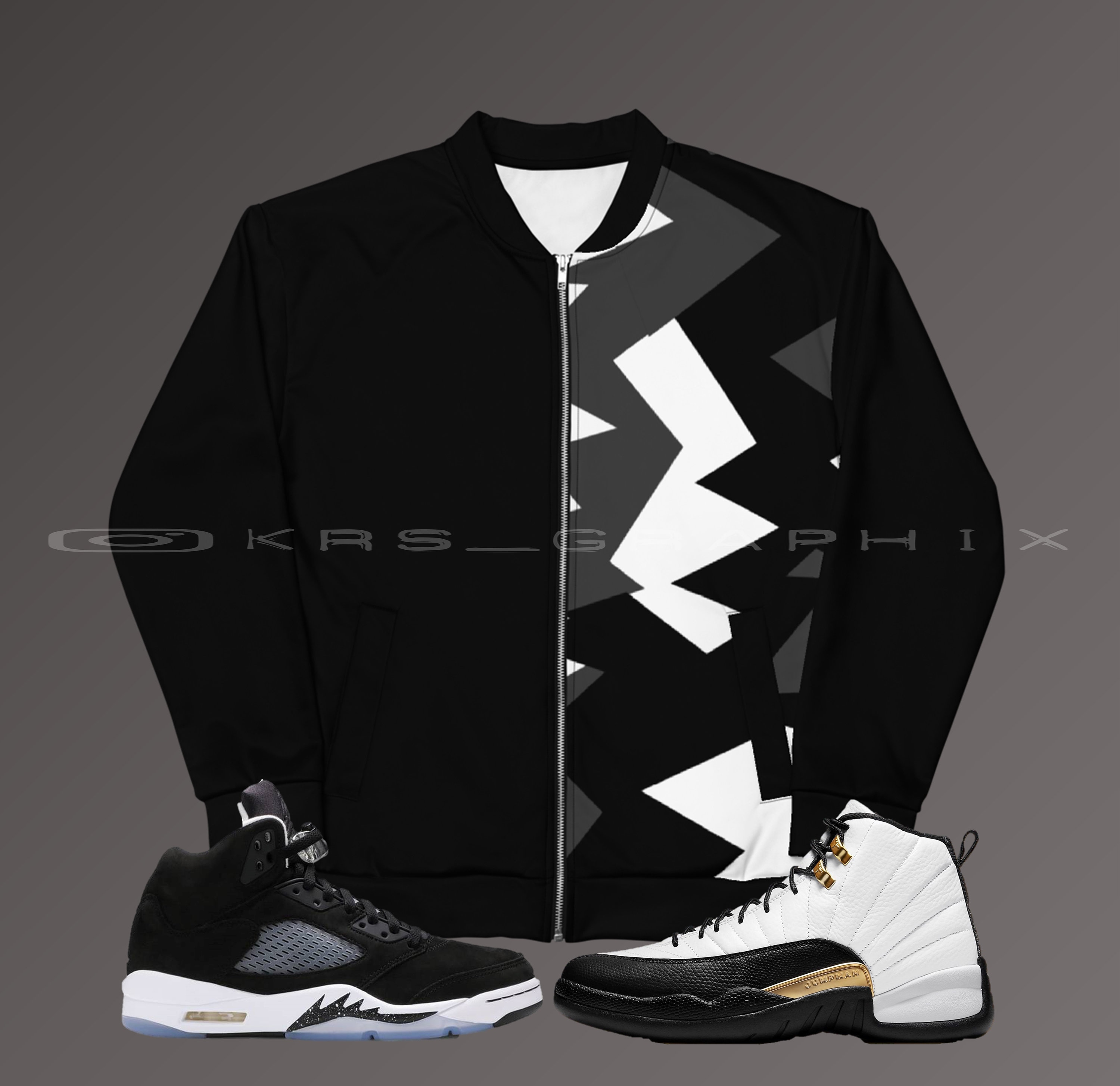 Aggiungi un tocco di tocco al tuo guardaroba con questo vibrante bomber Jordan 5 Retro 'Oreo' e Retr...