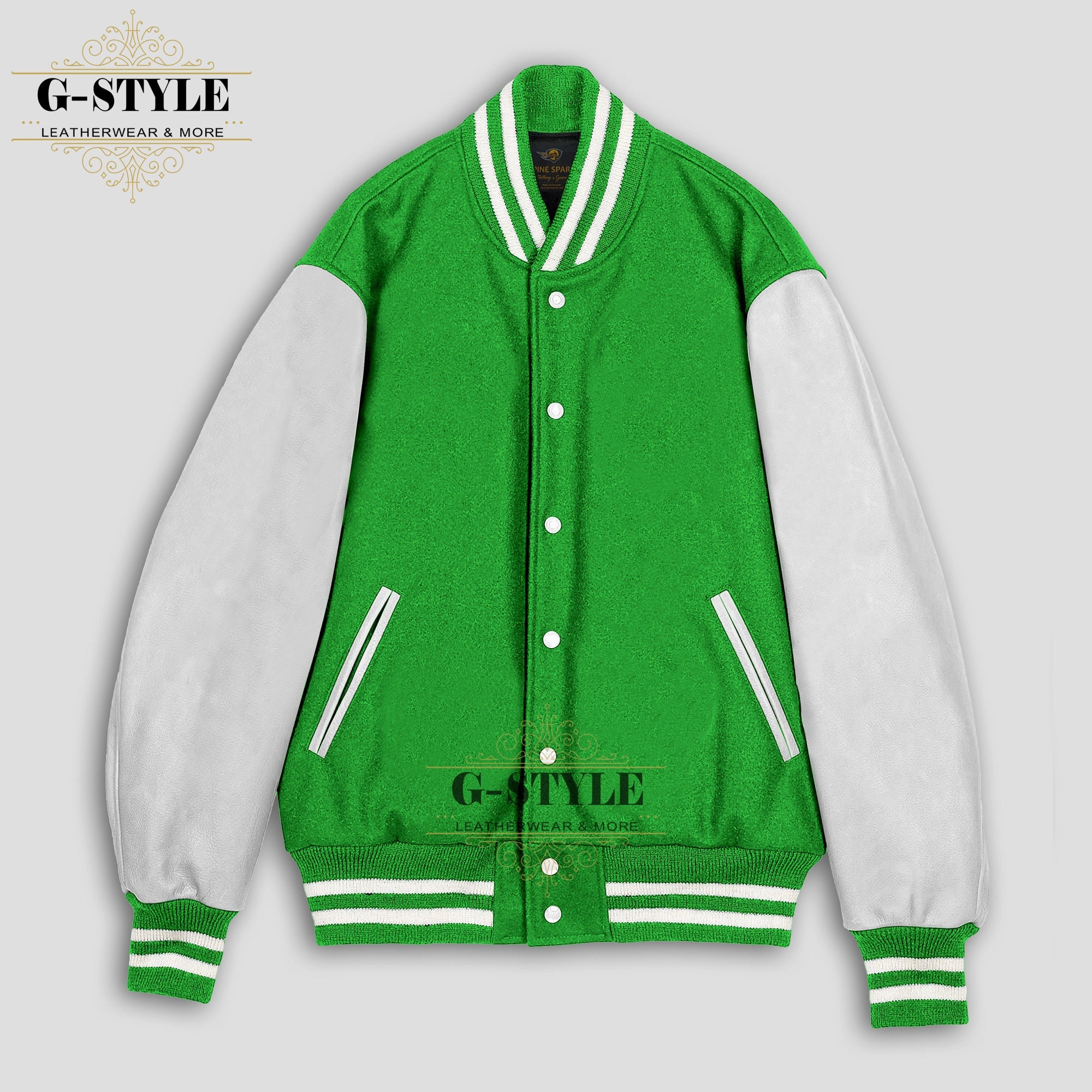 Spinespark Kelly Green & White, Varsity Jacket, Bomber Jacket, ...