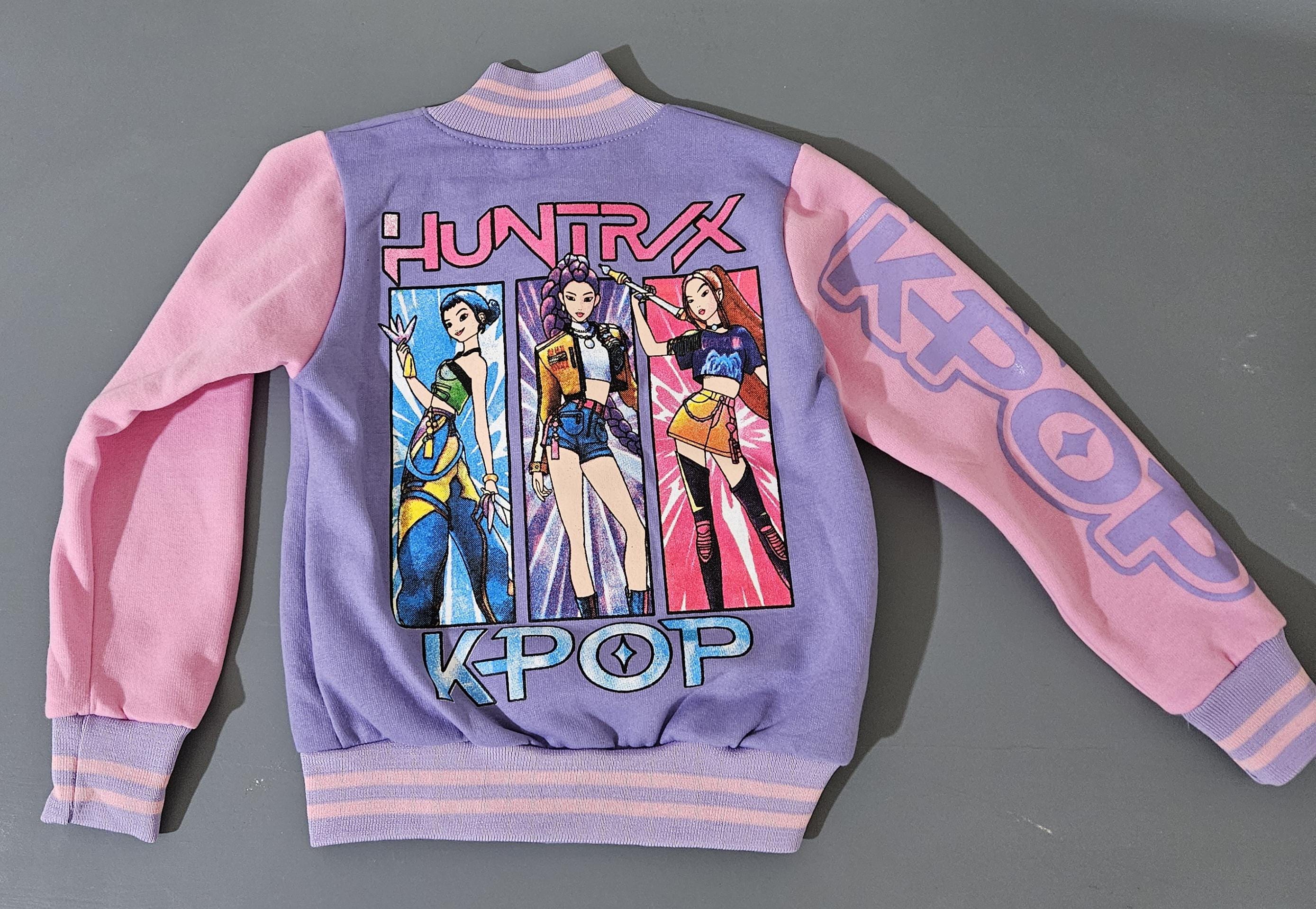Belle ragazze su misura Giacca K-pop Demon Hunters Huntrix Varsity Chiusura con bottoni viola/rosa T...