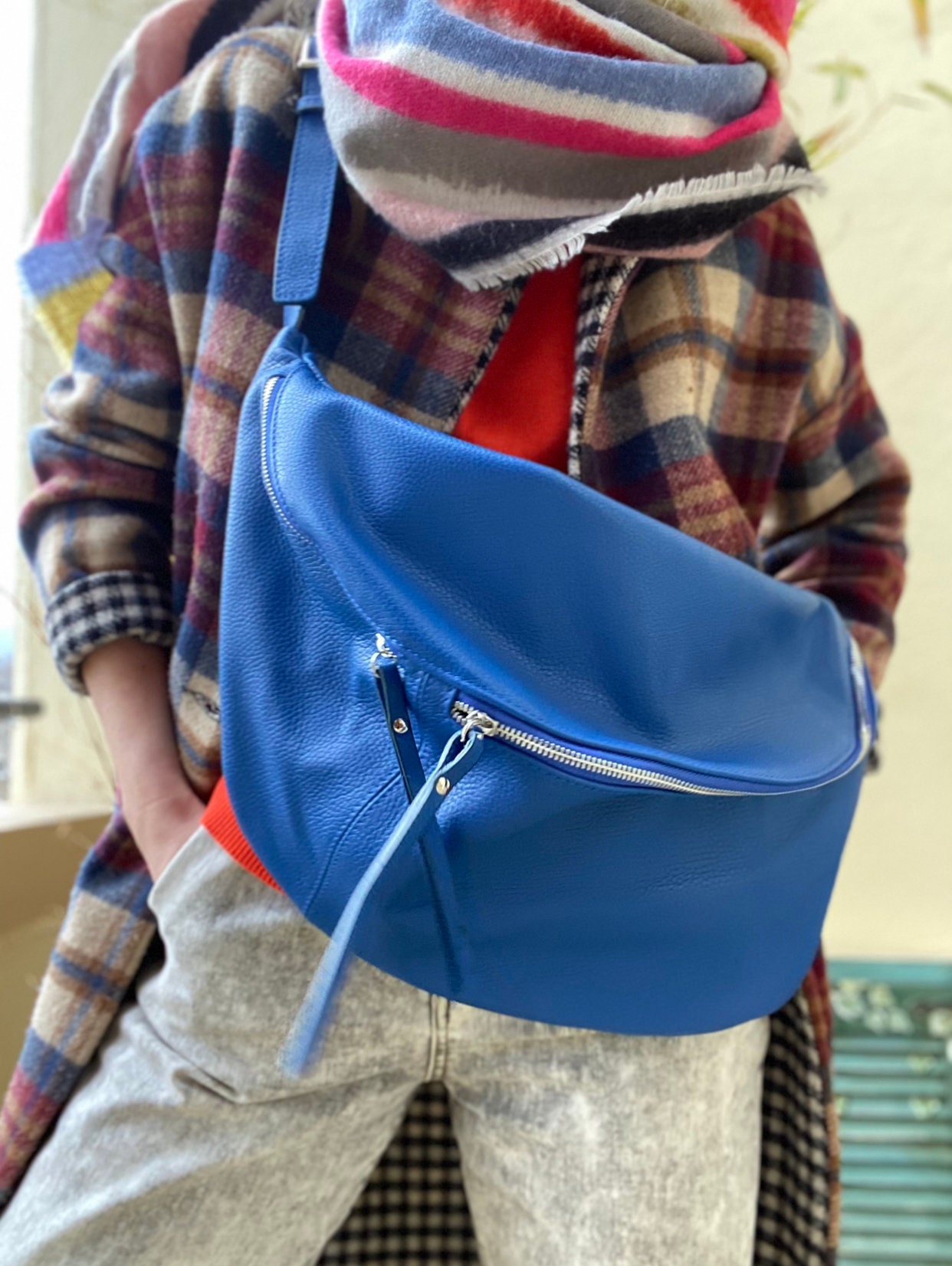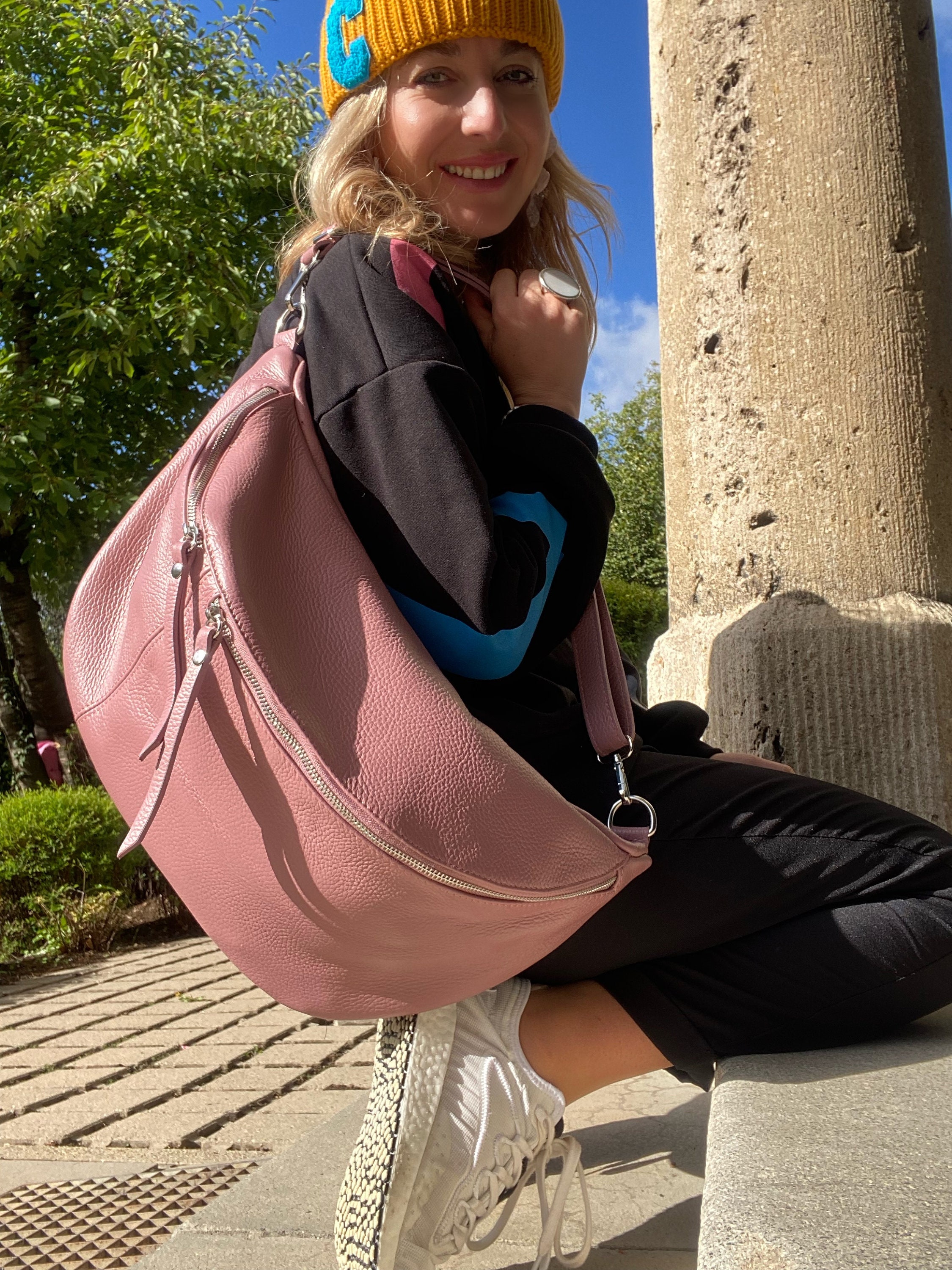 IDA XXL Borsa a tracolla in pelle extra large, marsupio grande in p...