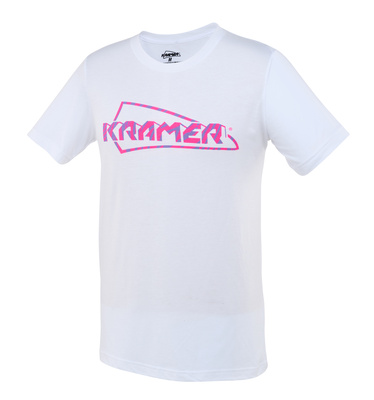 Kramer Guitars Tiger Stripe Tee M; color: white, with neon logo; 50% cotton, 25% polyester, 25% rayo...