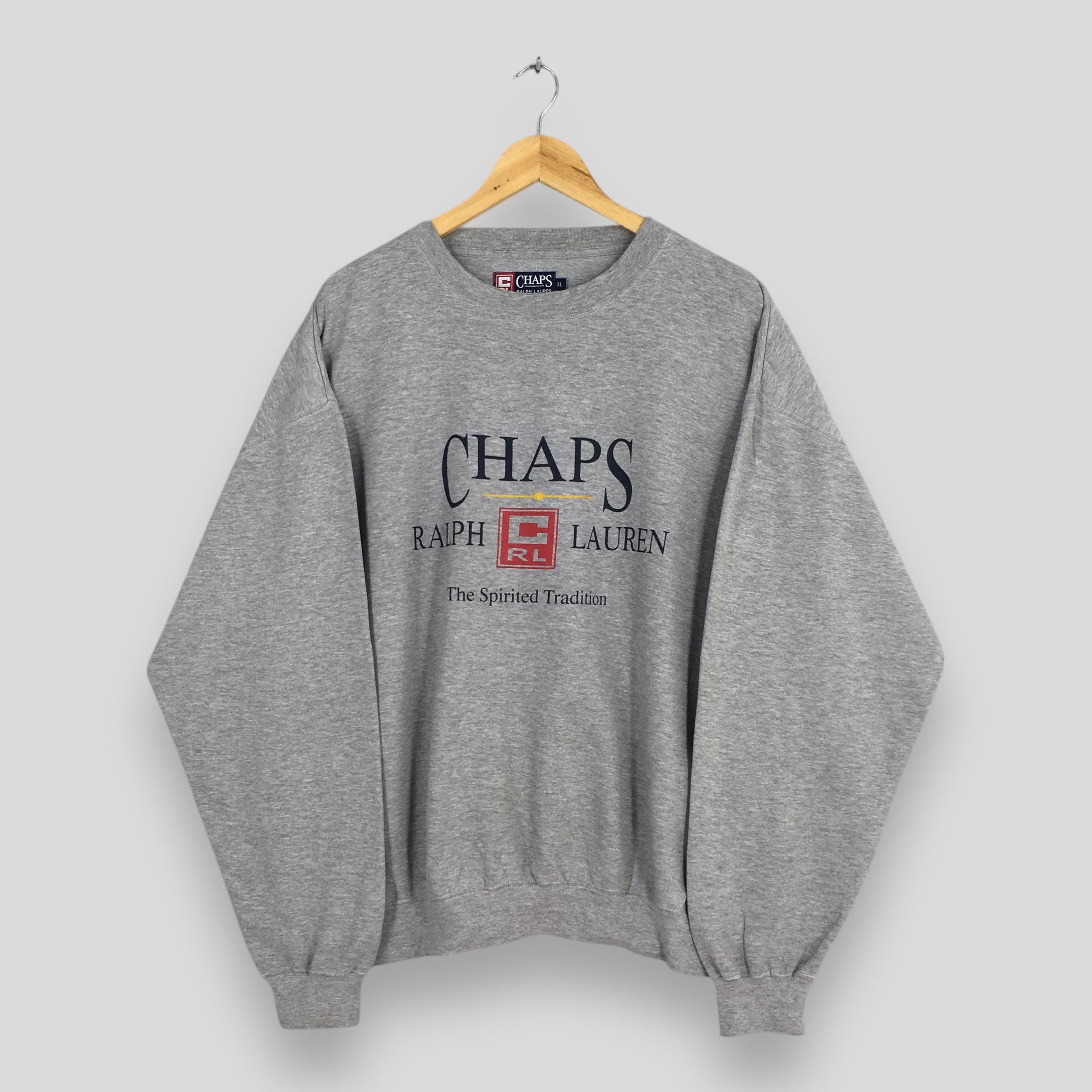 Felpa vintage Chaps Ralph Lauren grigia XLarge Maglione pullover stampato Chaps RL Maglione Chaps Ra...