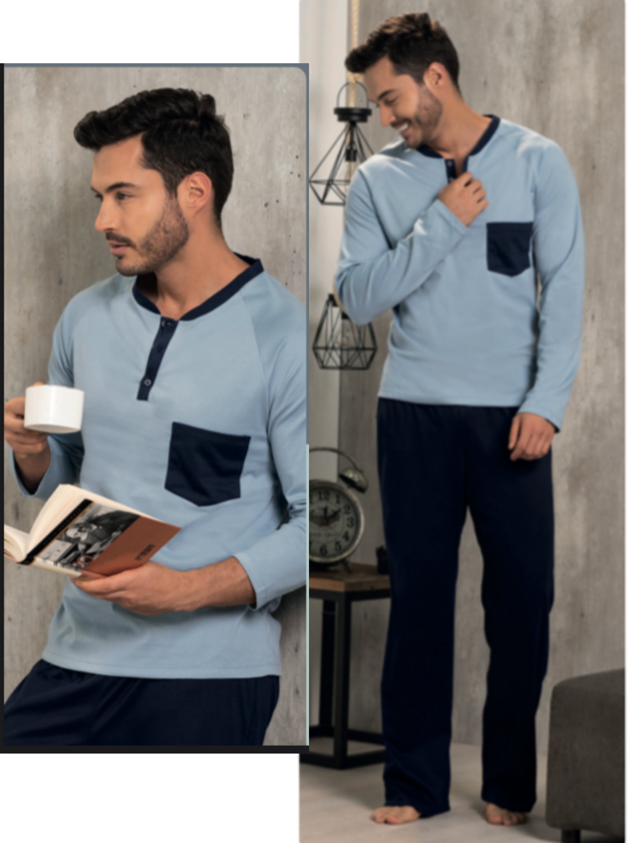 Pigiama Set Uomo - Mens Loungewear pants Set, Mens Cotton Pajamas -...