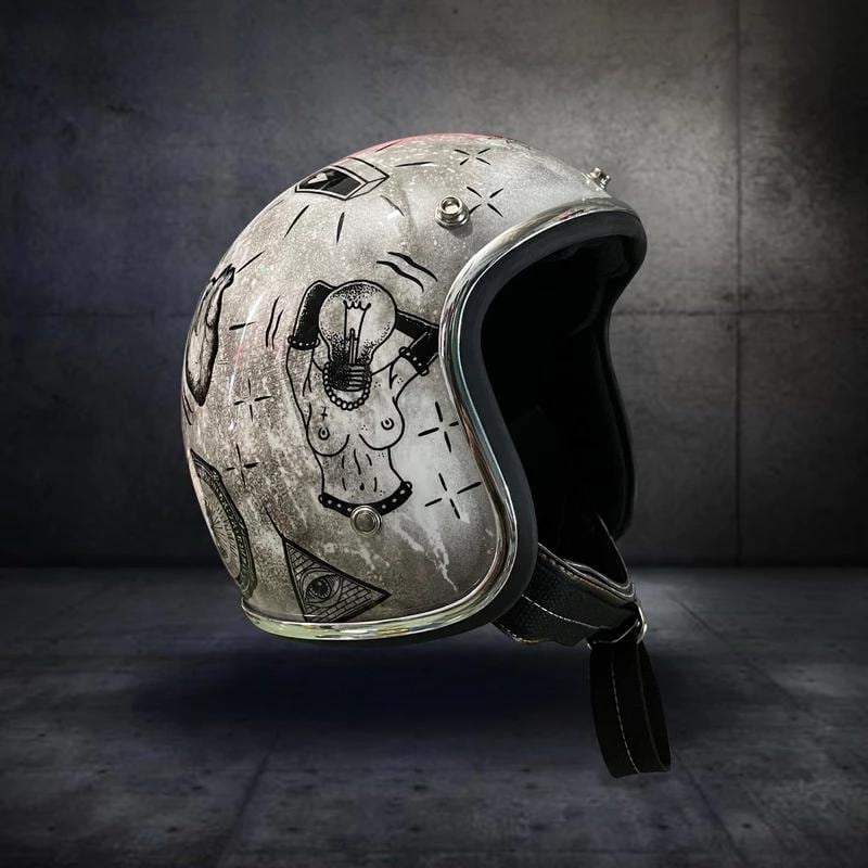 Casco da moto personalizzato Open Face Slim Head 500TX Raw Bobber C...
