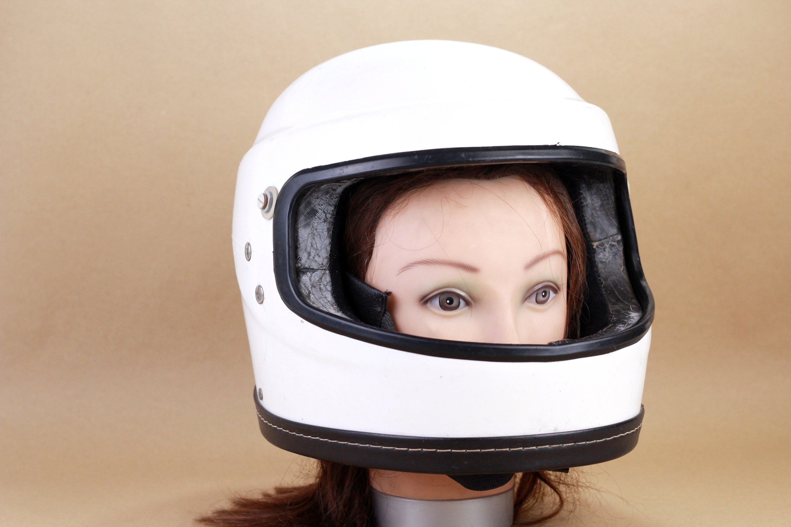 Casco da moto d'epoca - Casco anni '80 - Casco da moto bianco/nero - Casco da moto integrale. &Egrav...