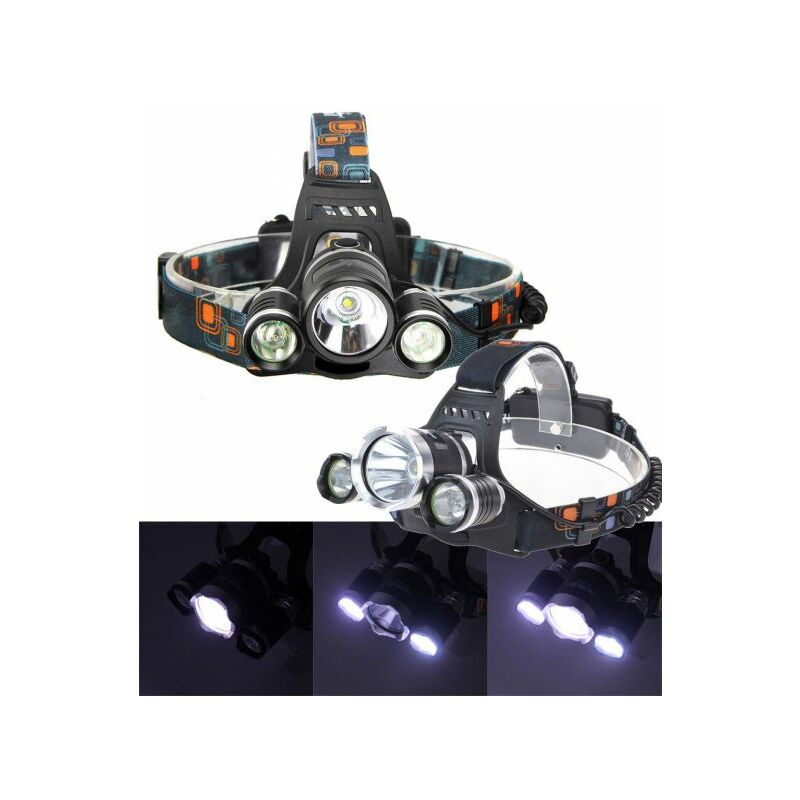 Torcia Lampada Frontale Led Ricaricabile 3 Led 5000 Lumen Cree T6 R...