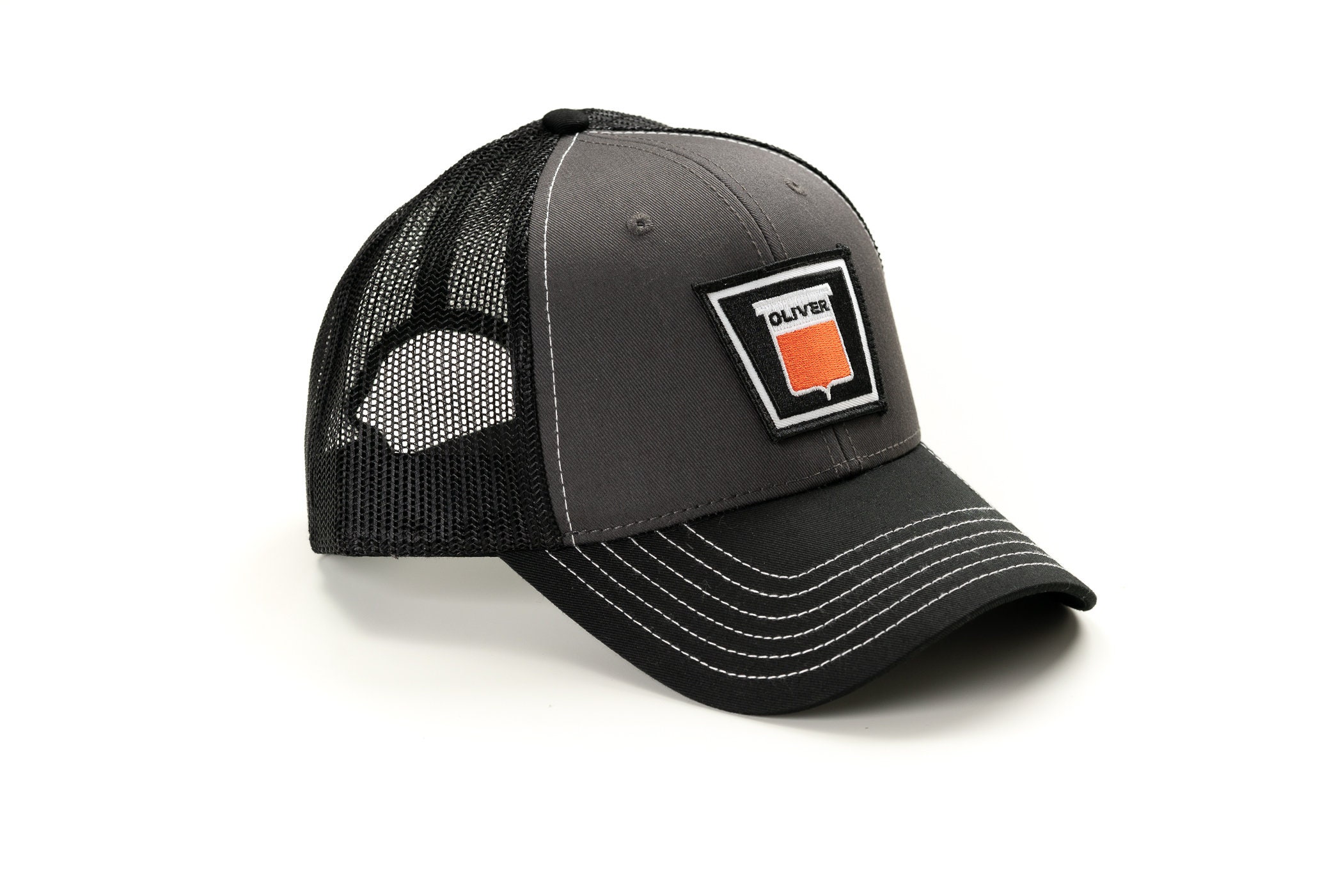 Cappello grigio con parte posteriore in rete nera e tesa nera con l'emblema Keystone Oliver. Regolaz...