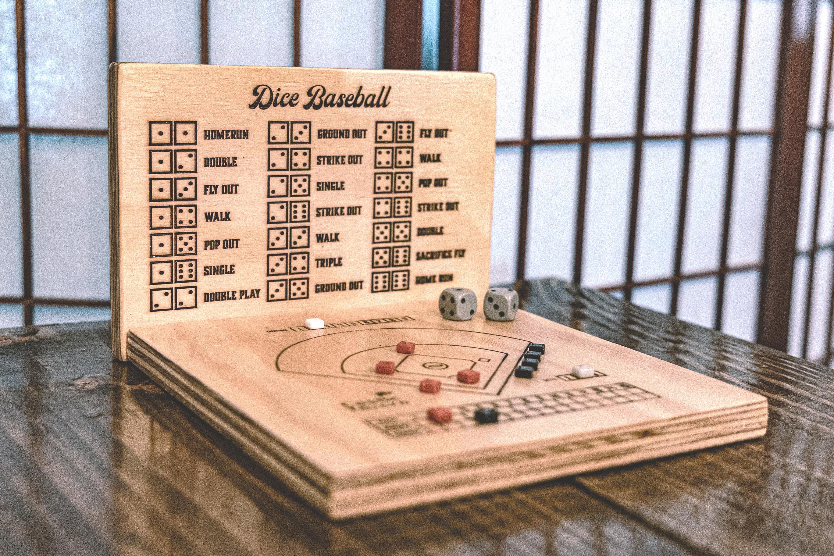 Gioco da tavolo in legno con dadi da baseball e pezzi da gioco, reg...