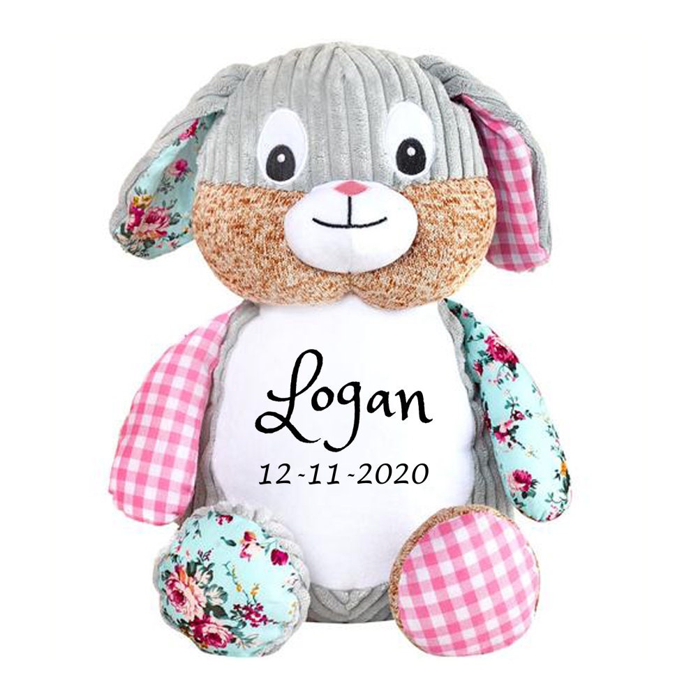 PERSONALIZZATO Baby peluche animale Rosa Bunny Arlequin- Custom Stu...