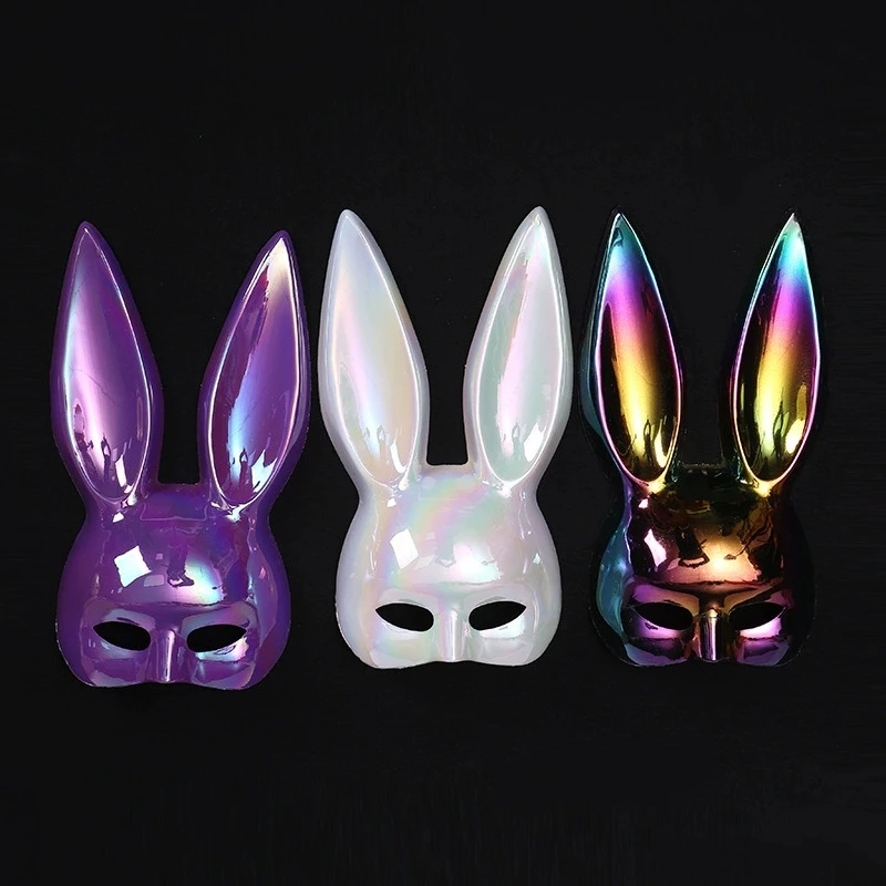 Maschera di Coniglio Bianco e Nero per Halloween, Decorazione per Feste, Maschera di Coniglio con Or...