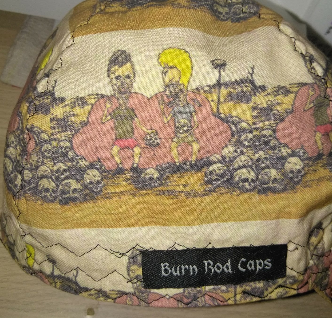 Disegno a matita B&BH di loro come Zombi. Berretto da saldatore con visiera trapuntata e cucitur...