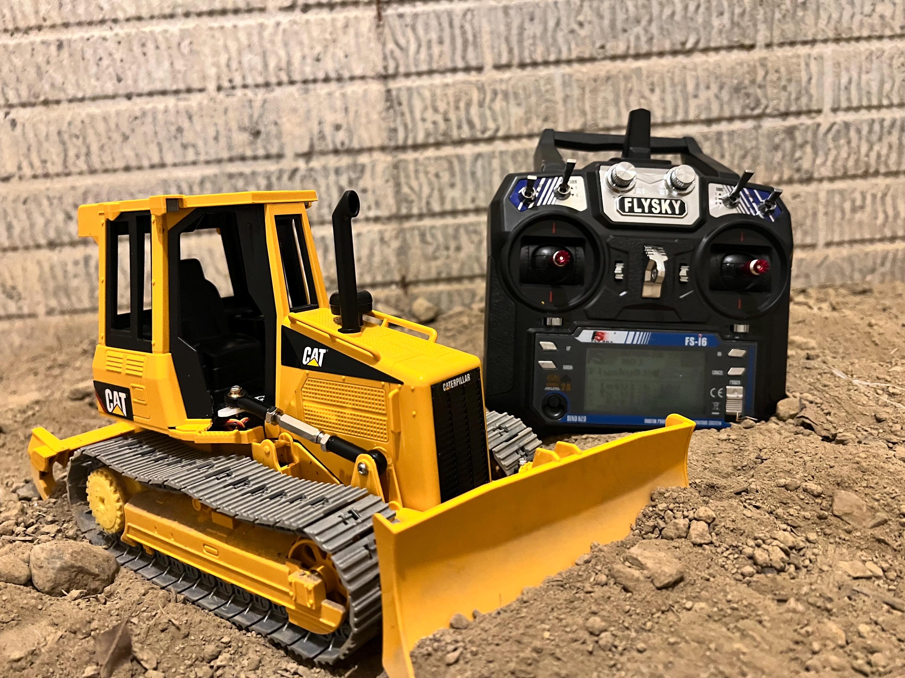 Bulldozer Bruder CAT D5 radiocomandato in scala 1/16. Include batterie, radiocomando e caricabatteri...