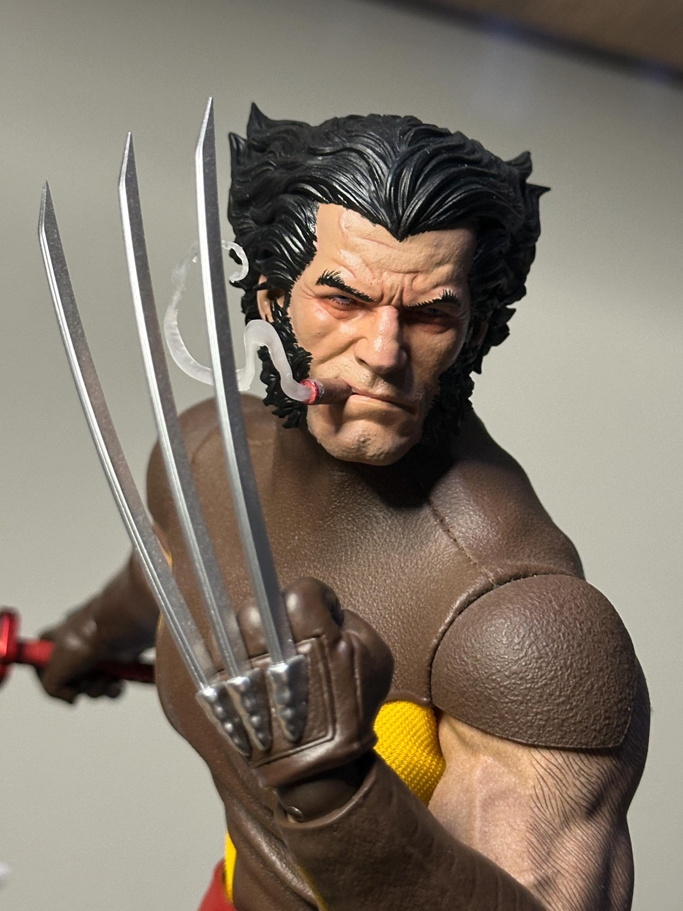 Scultura in stile fumetto di Wolverine Logan smascherato per action figure in scala 1/6. Si adatta a...