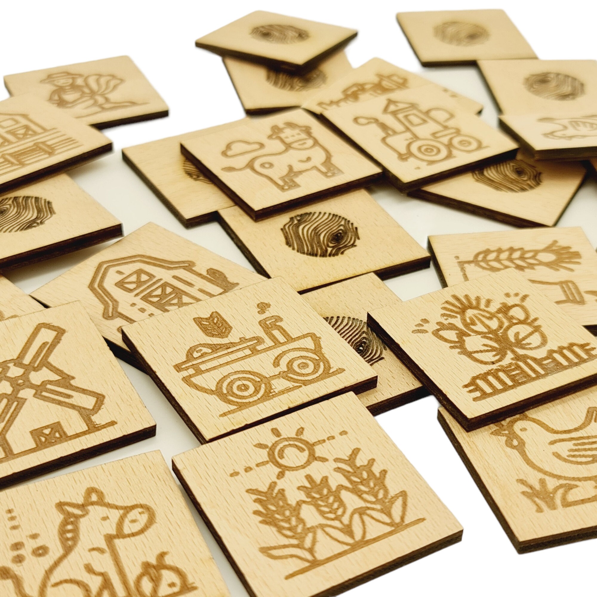Farm Memory Game, 30 pezzi in legno, gioco di abbinamento per bambi...