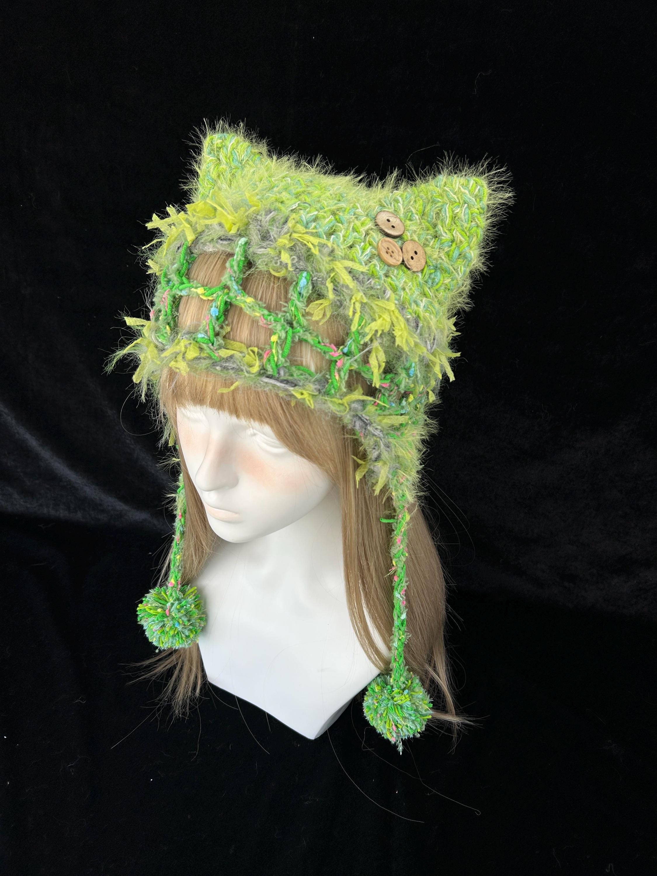 Collezione | Berretto con orecchie di gatto verde muschio e nappe c...