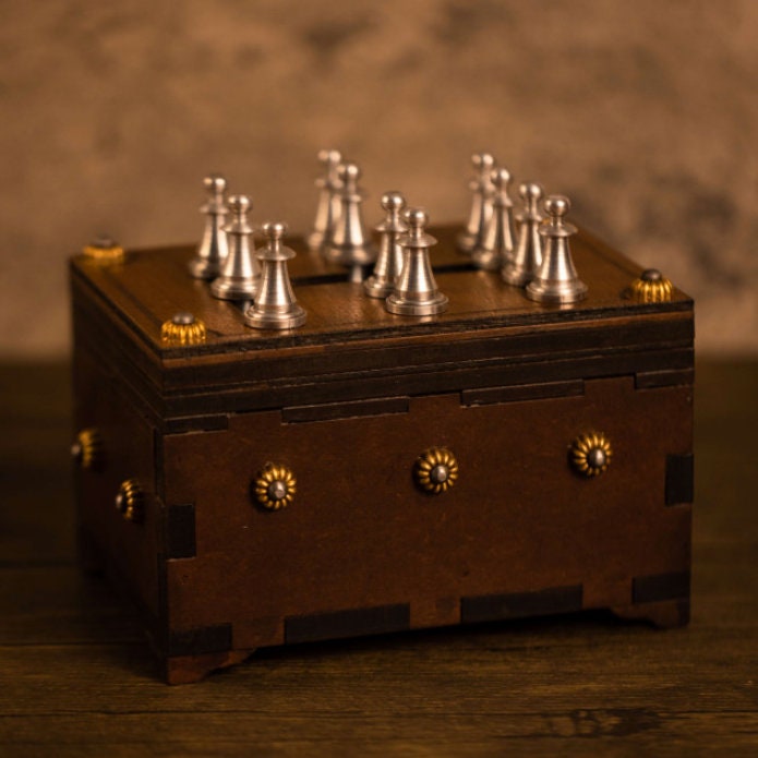 Realizzato a mano in Germania, il puzzle box Schach (Scacchi) di Jean Claude Constantin contiene 11 ...