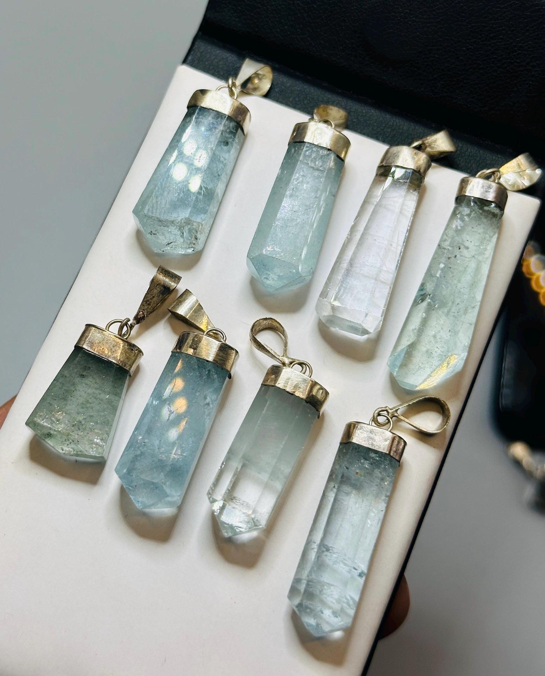 Ciondolo in acquamarina grezza: cristallo in argento sterling, piet...