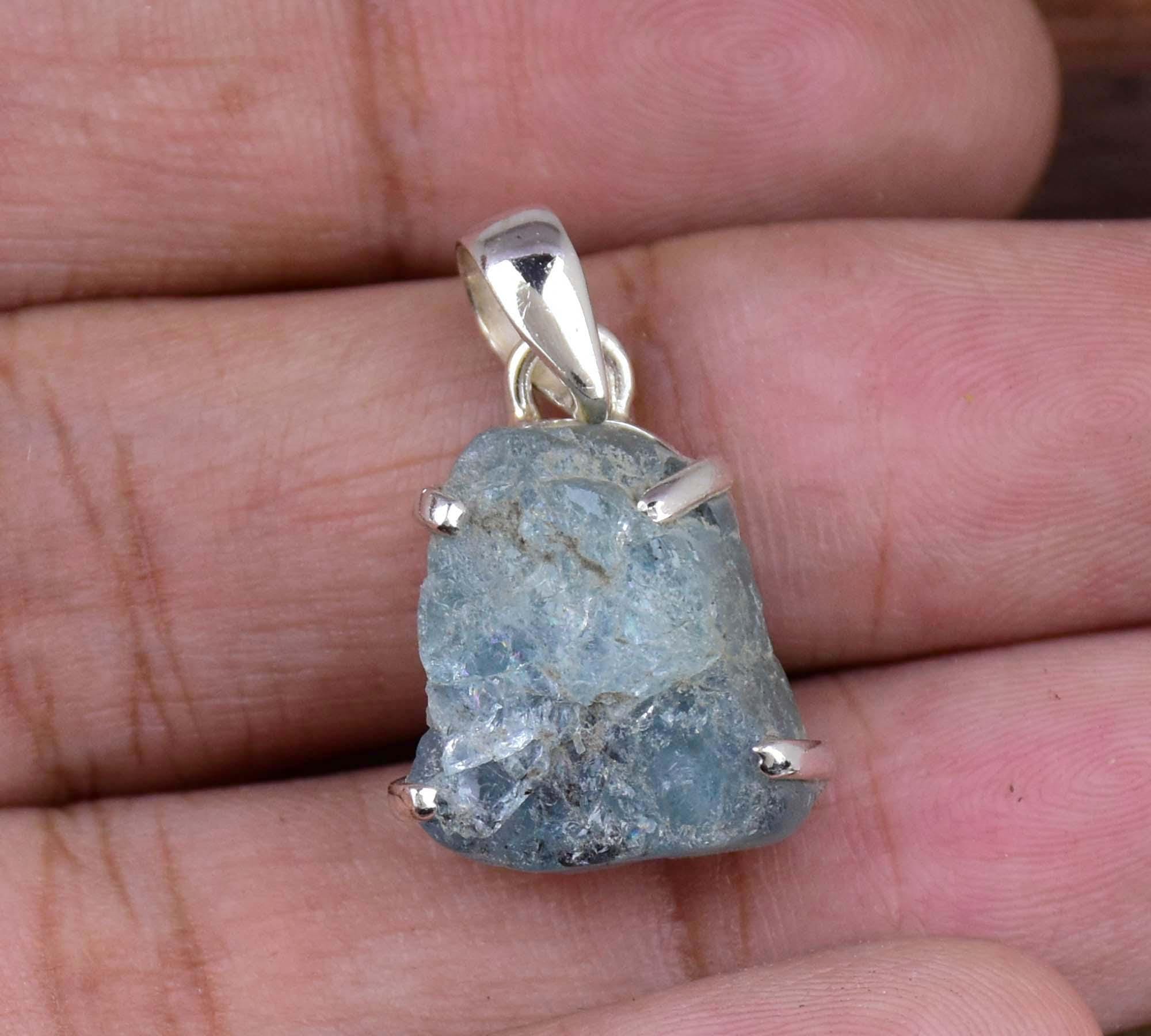 Ciondolo in acquamarina naturale, argento sterling 925, ciondolo da donna, regalo per lei, gioielli ...