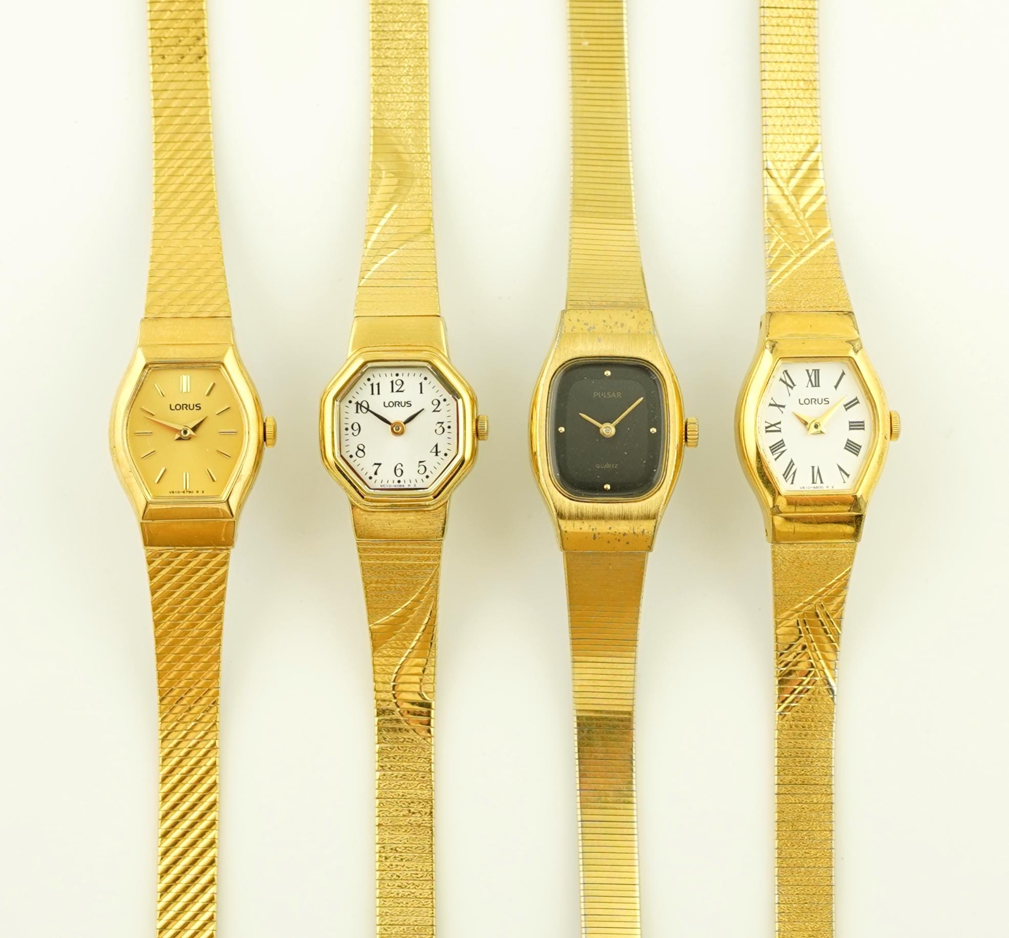 Misura del polso nella foto: 15 cm (5,9 pollici) 1. Lorus Un orologio color oro con cassa a botte e ...