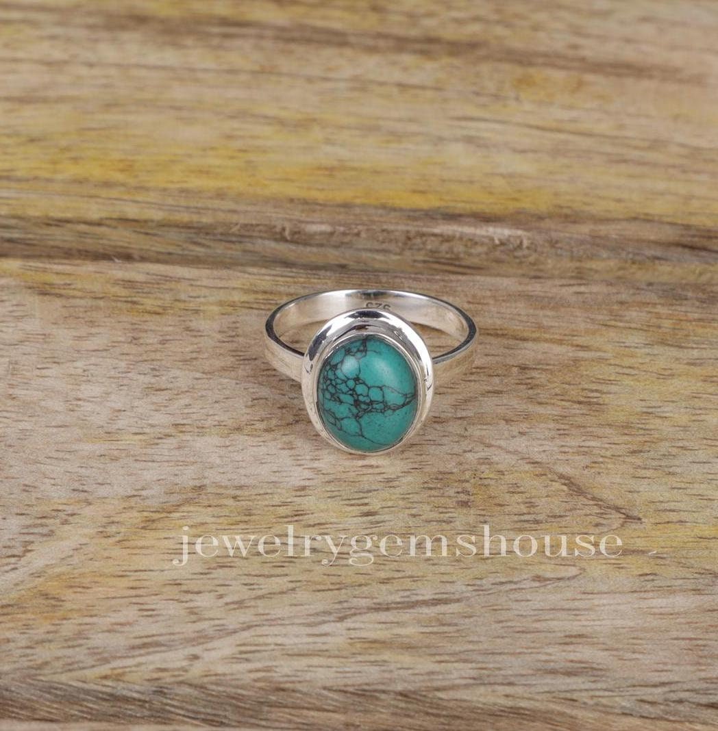 Anello con turchese naturale, anello in argento sterling 925, anell...