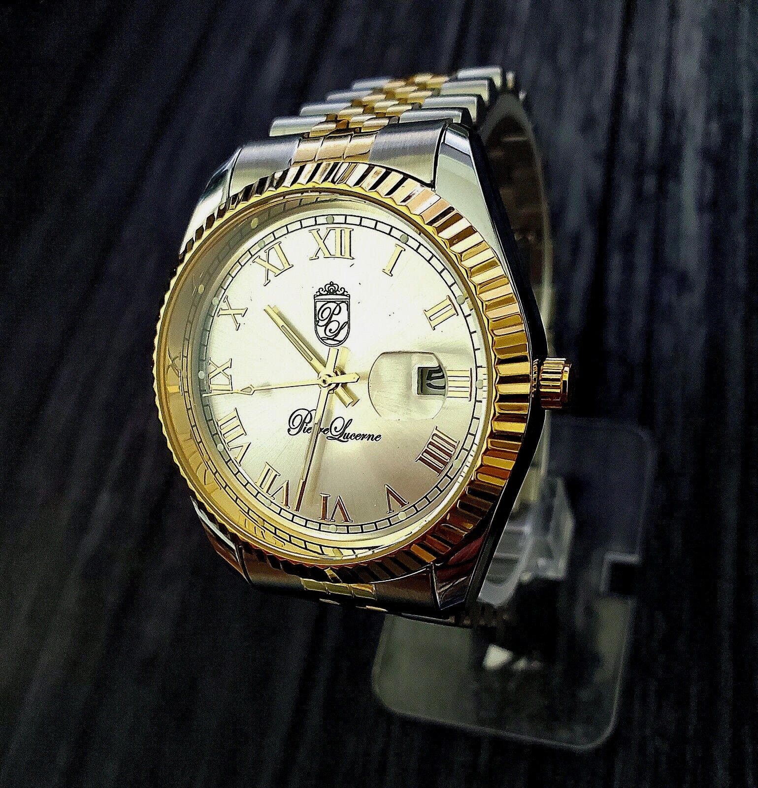 Orologio da uomo Pierre Lucerne DateJust: lunetta scanalata in oro,...