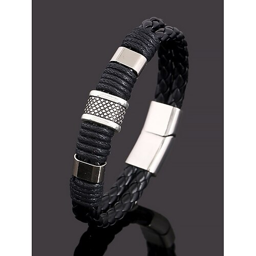 Bracciale da uomo in similpelle intrecciata con chiusura in acciaio...