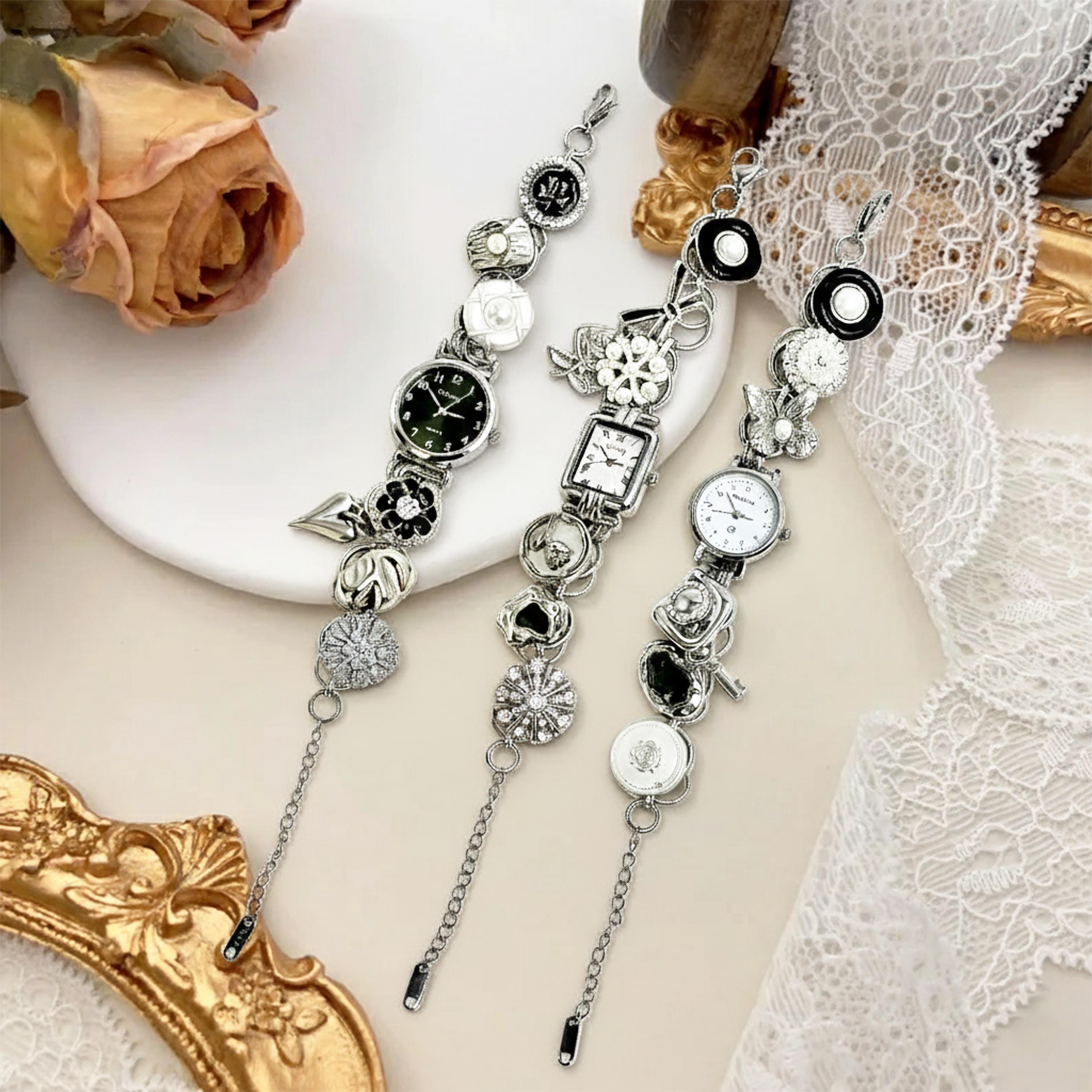 Bracciale con ciondoli vintage e orologio combinato - Bracciale con...