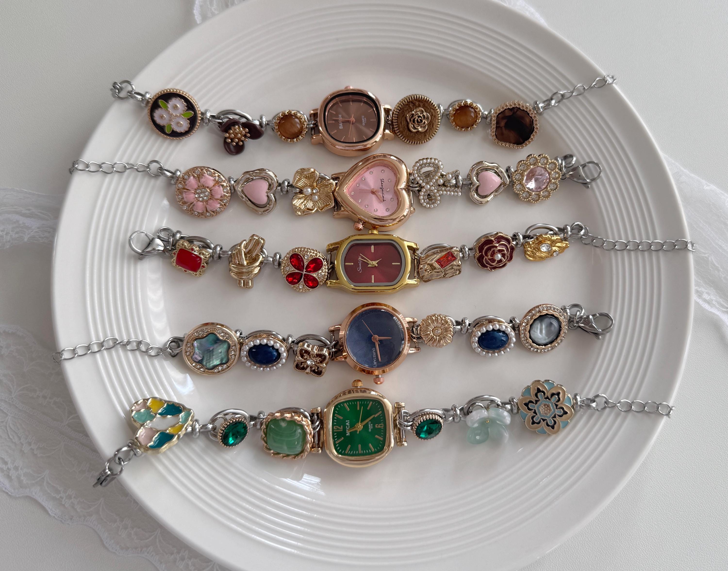 Bracciale con ciondolo Y2K, orologio con cuore e fiore, grazioso br...