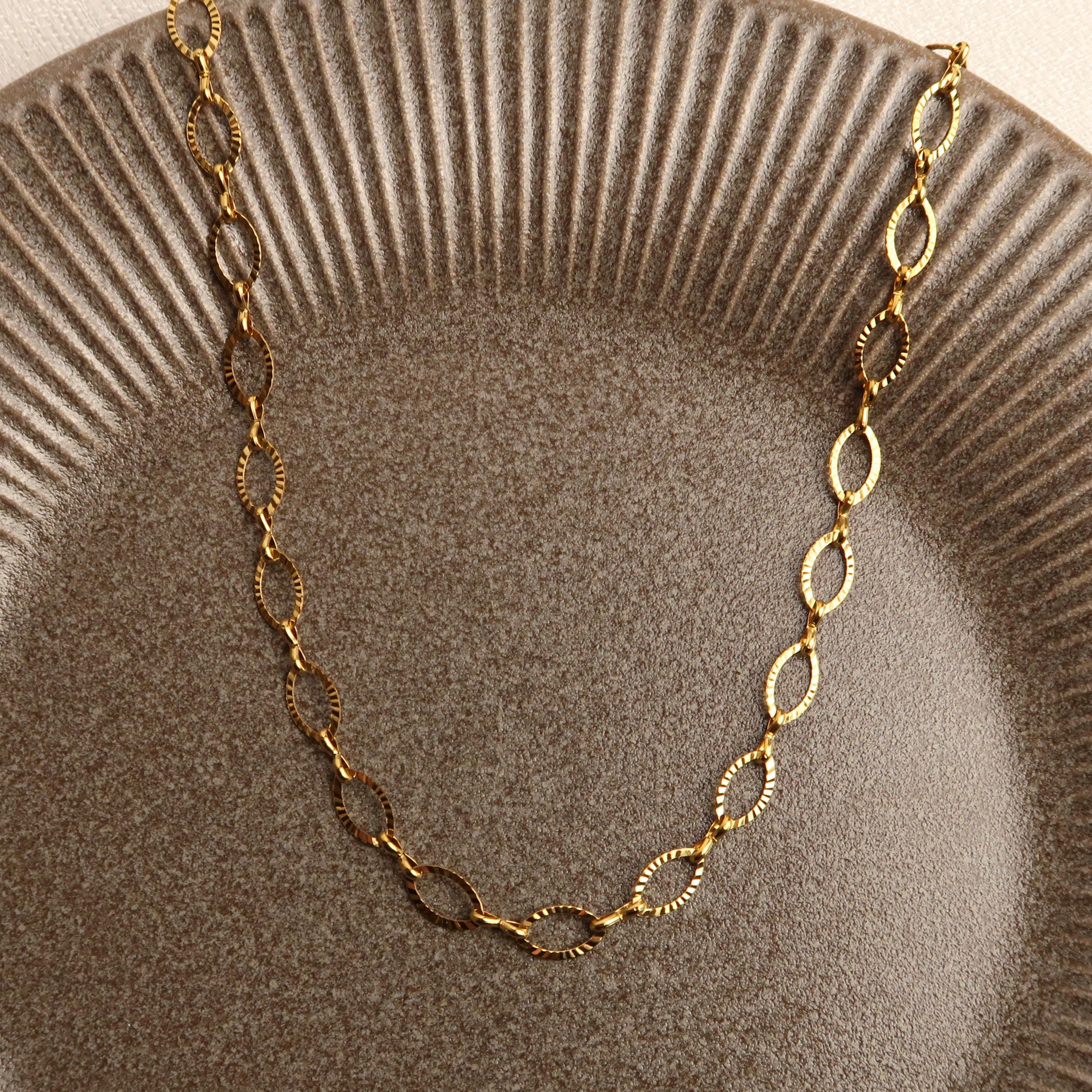 LIA - Collana in acciaio inossidabile con maglie ovali in rilievo La collana LIA è un esclusi...