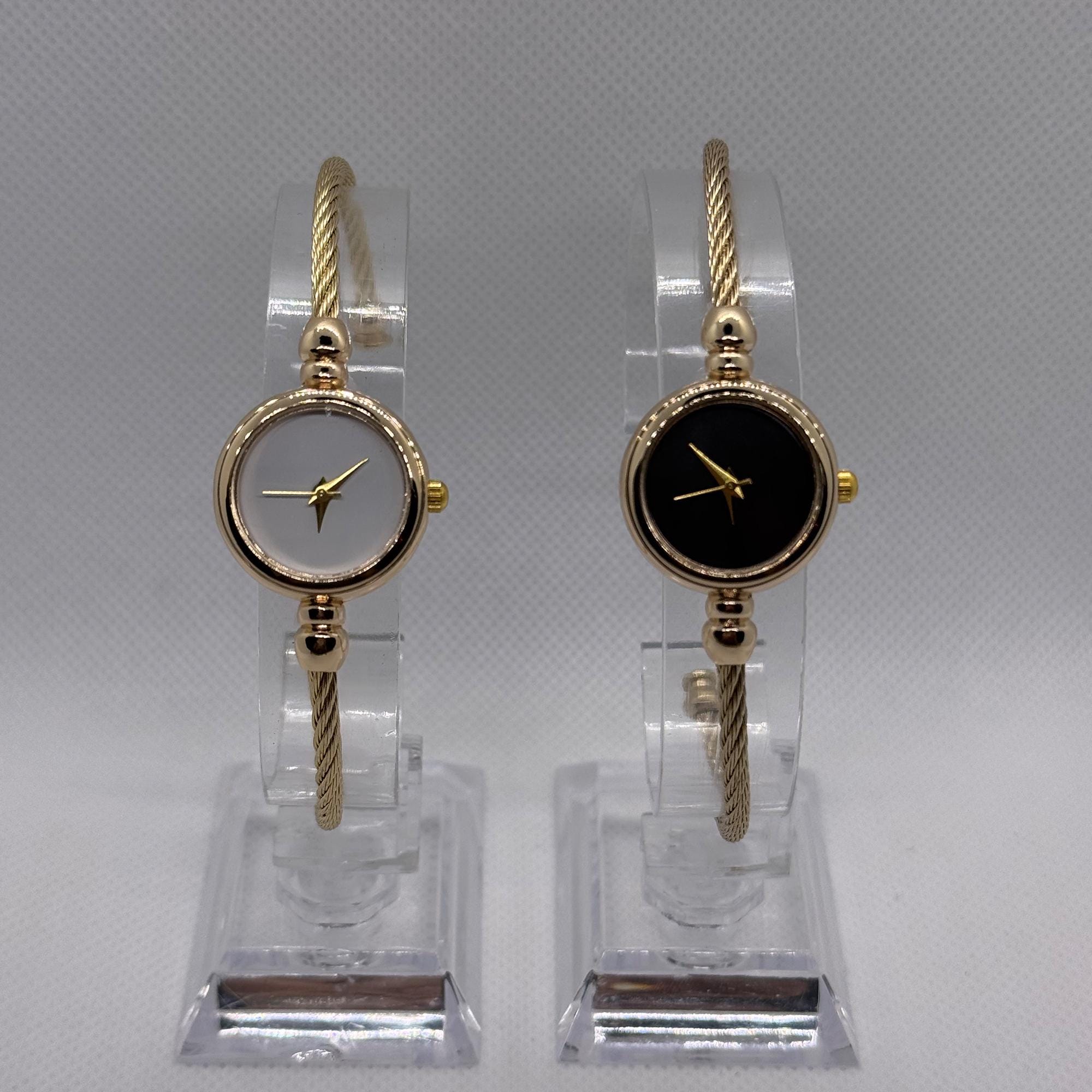 Orologio vintage da donna in oro, quadrante minimalista nero o bian...